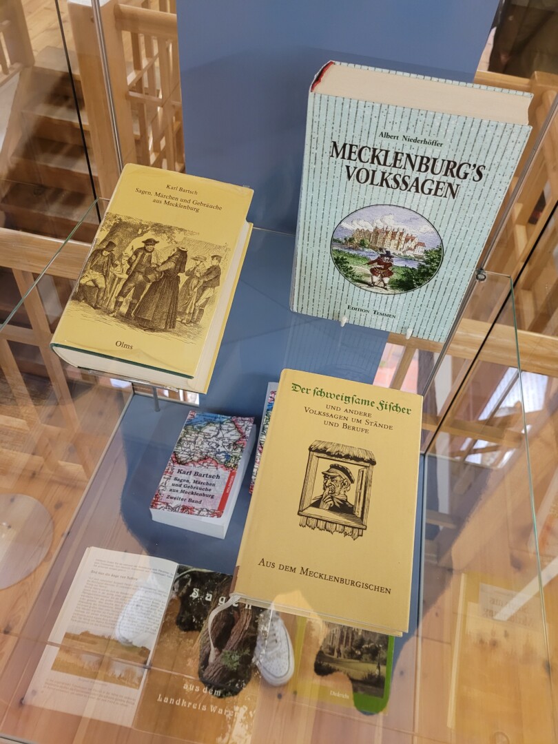 Das Erzählen von Sagen zählt seit 2021 zum immateriellen UNESCO-Weltkulturerbe. Auch das Schliemann-Museum Ankershagen gehört zu einer anerkannten Einrichtung, die dieses Erbe pflegt. Insgesamt sind 50.000 Sagen aus Mecklenburg-Vorpommern bekannt. Für die neue Sonderausstellung „Sagenhafte Archäologie“ arbeiteten Museumsleiterin Undine Haase und Archivar Rainer Hilse eng mit der Studentin Felicitas Ehmig von der Universität Rostock zusammen. Sie wählten insbesondere Geschichten und Fundplätze aus dem Landkreis Mecklenburgische Seenplatte, bevorzugt aus der Umgebung Ankershagen, aus.