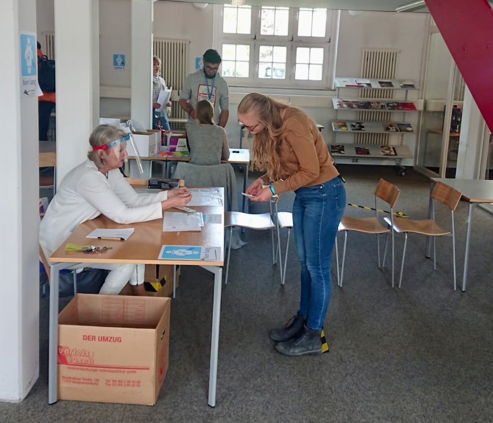 Wer sich testen lässt und virenfrei ist, bekommt eine Art Ausweis. Damit kann er zum Beispiel an der ersten Schlange vorbeigehen und sich in der zweiten Etage die Hände desinfizieren. Maske tragen ist trotzdem nötig und die Mindestabstände sollten auch eingehalten werden. „Genau das fällt den meisten Schülern am schwersten“, haben die Lehrer beobachtet.