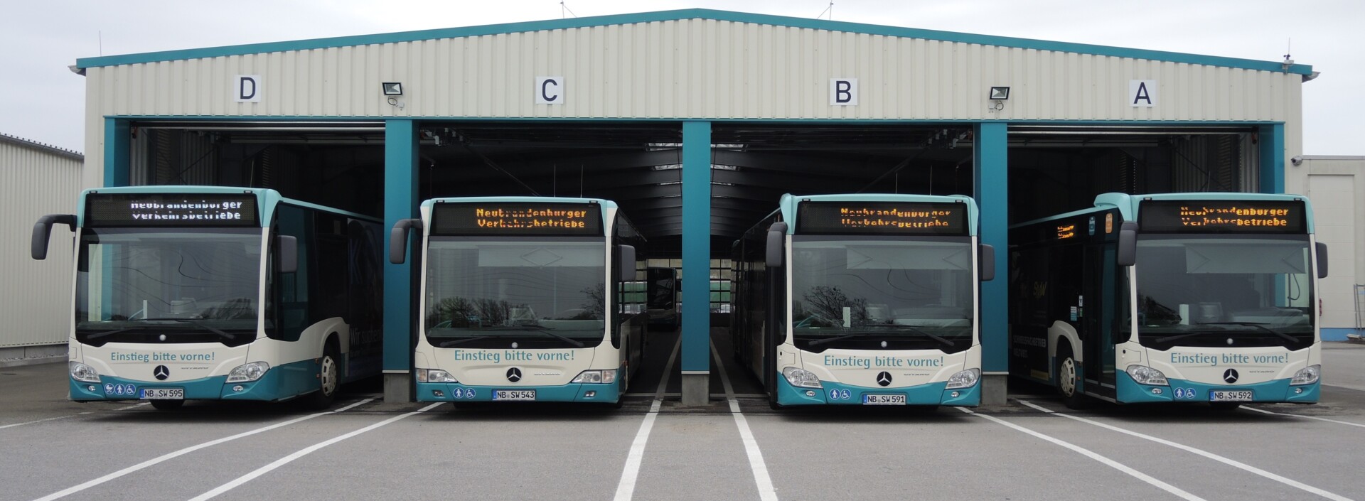 Die Neubrandenburger Verkehrsbetriebe haben 30 Busse im Stadtverkehr im Einsatz. Weil die Technik nur bei neuen Fahrzeugmodellen eingebaut werden kann, sind weitere Nachrüstungen vorerst nicht geplant. Neue Busse sind bereits serienmäßig mit Außenlautsprechern und LED-Einstiegshilfen ausgestattet.