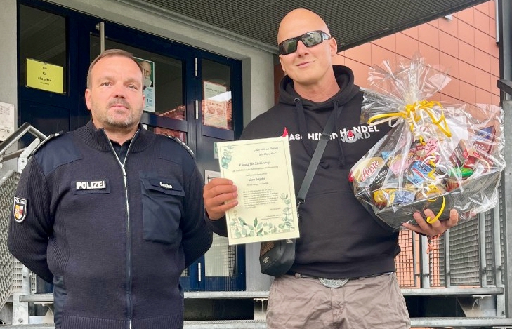 Auch Lars Jenjahn, ein 35-jähriger Bewohner Neubrandenburgs, zeigte Zivilcourage. Am 11. März lief eine 60-jährige Dame an Herrn Jenjahn vorbei und gab an, dass ihr soeben die Handtasche aus dem Fahrradkorb geklaut wurde. Der Dieb ist noch zu sehen, läuft jedoch gerade davon. Lars Jenjahn nahm die Verfolgung auf und konnte beobachten, dass der Dieb mehrere Gegenstände, darunter auch die Handtasche, bei seiner Flucht weggeworfen hat. Er konnte den Beschuldigten einholen, festhalten und an die Polizei übergeben. Im Nachgang suchte Der 35-Jährige den Fluchtweg ab und konnte die Handtasche sowie Bargeld, was ebenfalls der Dame gehörte, auffinden und an die Frau übergeben.