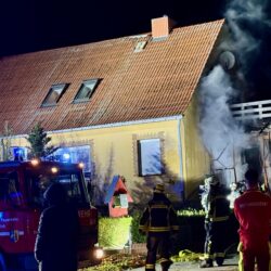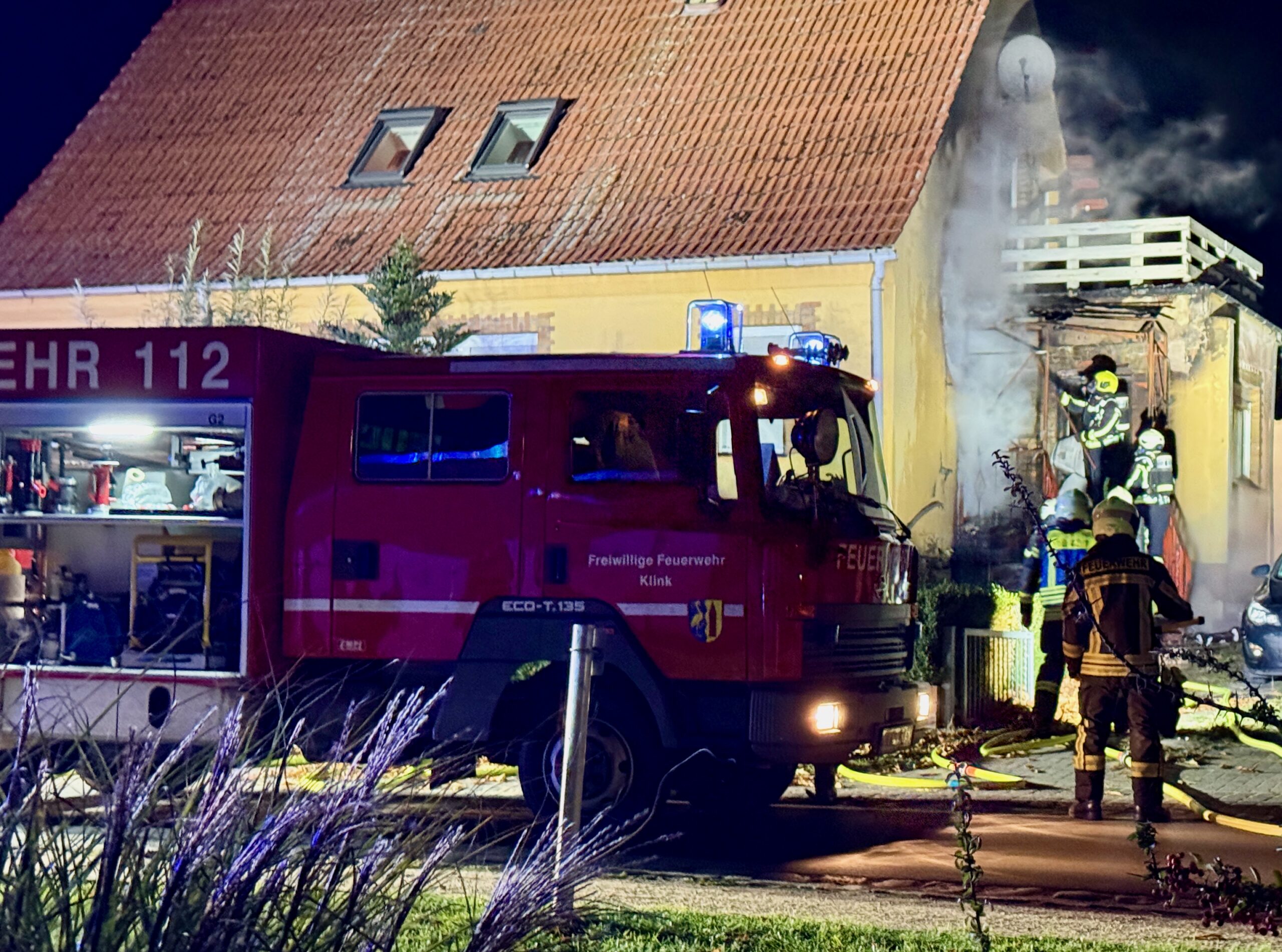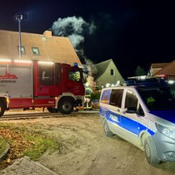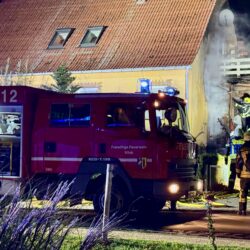 Das hätte ohne das schnelle Eingreifen der Feuerwehr deutlich schlimmer ausgehen können: Heute früh, kurz nach Mitternacht, meldete ein Zeuge einen Brand in einem Haus in der Sembziner Dorfstraße. Warener Polizisten eilten los und stellten fest, dass ein überdachter Anbau vor der Hauseingangstür in Flammen stand. Durch die Freiwilligen Feuerwehren aus Klink, Waren und die Führungsgruppe des Amtes Seenlandschaft Waren konnte der Brand schnell unter Kontrolle gebracht, vollständig gelöscht und somit ein Übergreifen auf das Haus verhindert werden. Es waren insgesamt zehn Fahrzeuge und 39 Kameraden im Einsatz. Nach derzeitigem Erkenntnisstand liegt die Brandursache in einem unsachgemäß entsorgten Zigarettenstummel, der den Inhalt eines Behälters entzündete und dessen Flammen sich auf den überdachten Anbau ausweiteten. Neben dem Anbau des Wohnhauses wurden ebenfalls zwei nahe stehende Pkw leicht beschädigt. Es entstand ein Gesamtschaden von circa 30.000 Euro. Die Kriminalpolizei hat die Ermittlungen wegen fahrlässiger Brandstiftung aufgenommen.