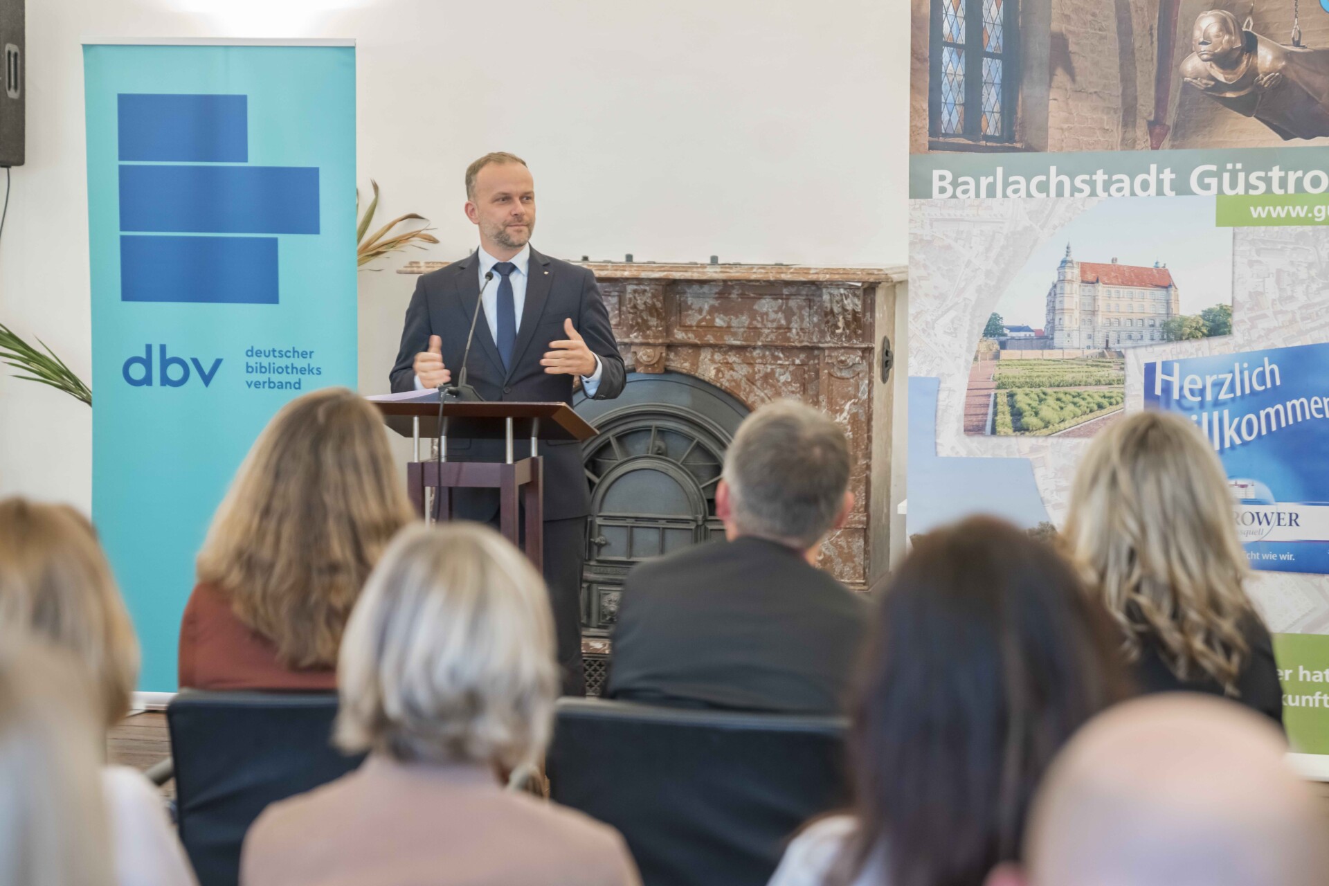 Der Landesverband Mecklenburg-Vorpommern im deutschen Bibliotheksverband (dbv) vertritt rund 70 kommunale und wissenschaftliche Bibliotheken des Landes. Vor wenigen Tagen trafen sich die Verbandsmitglieder sowie geladene Gäste wie Andreas Wellmann, Geschäftsführendes Vorstandsmitglied des Städte- und Gemeindetags Mecklenburg-Vorpommern, auf dem 25. dbv-Landestreffen im Haus der Kultur und Bildung in Neubrandenburg. Auf der Tagesordnung stand neben aktuellen Themen auch die Wahl des Vorstands sowie des Vorsitzenden. Dabei wurde Neubrandenburgs Oberbürgermeister Silvio Witt als Vorsitzender einstimmig wiedergewählt.