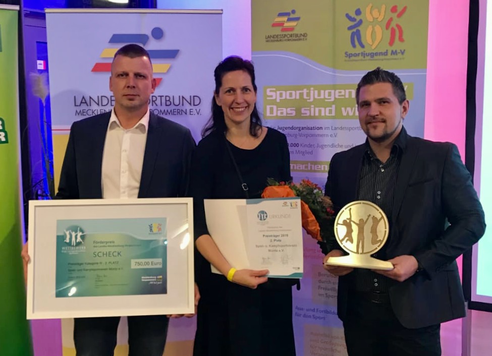 „Unsere Bewerbung wurde von der Jury auf Kreisebene auf den ersten Platz in der Kategorie Großsportvereine votiert und auf Landesebene weitergeleitet. Dort belegten wir den 2. Platz hinter dem ‚1. Basketballclub Rostock'“, so Vereinsportlehrer Max Mayer gegenüber „Wir sind Müritzer“.