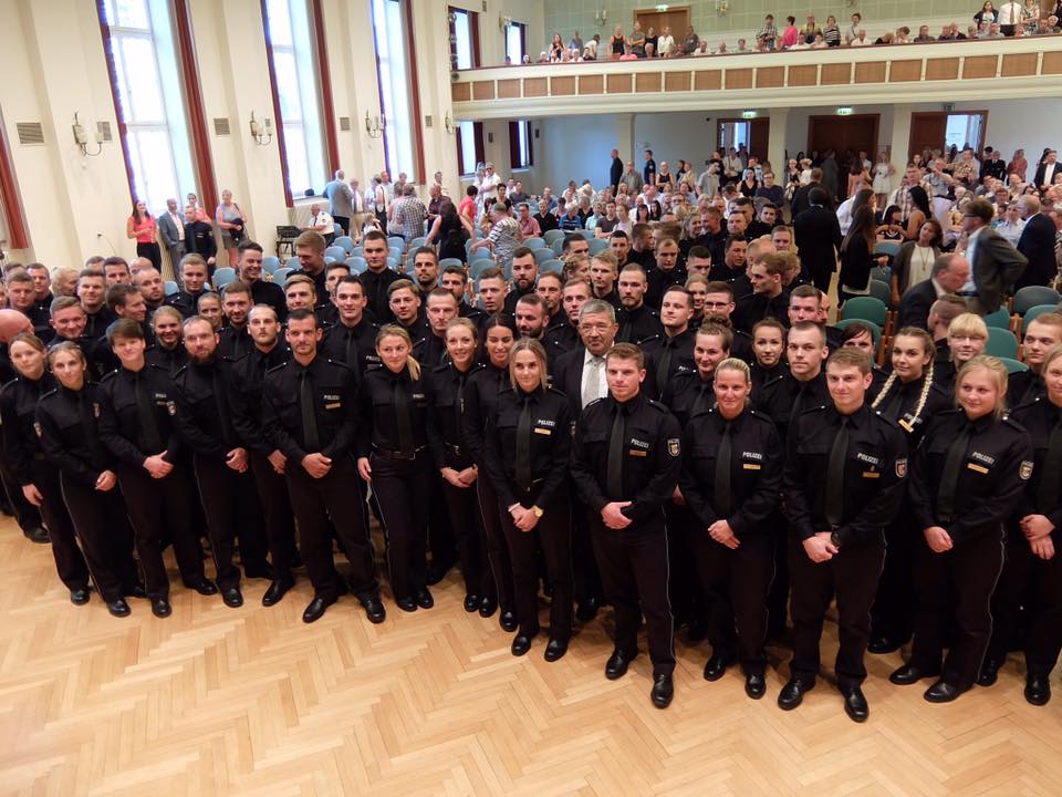 So viele Polizisten wie in diesem Jahr wurden noch nie zeitgleich in Güstrow ernannt. Die Zahl der Polizisten wird sich in Mecklenburg-Vorpommern in den nächsten Jahren von 5.800 auf 6.200, also um 400 erhöhen.