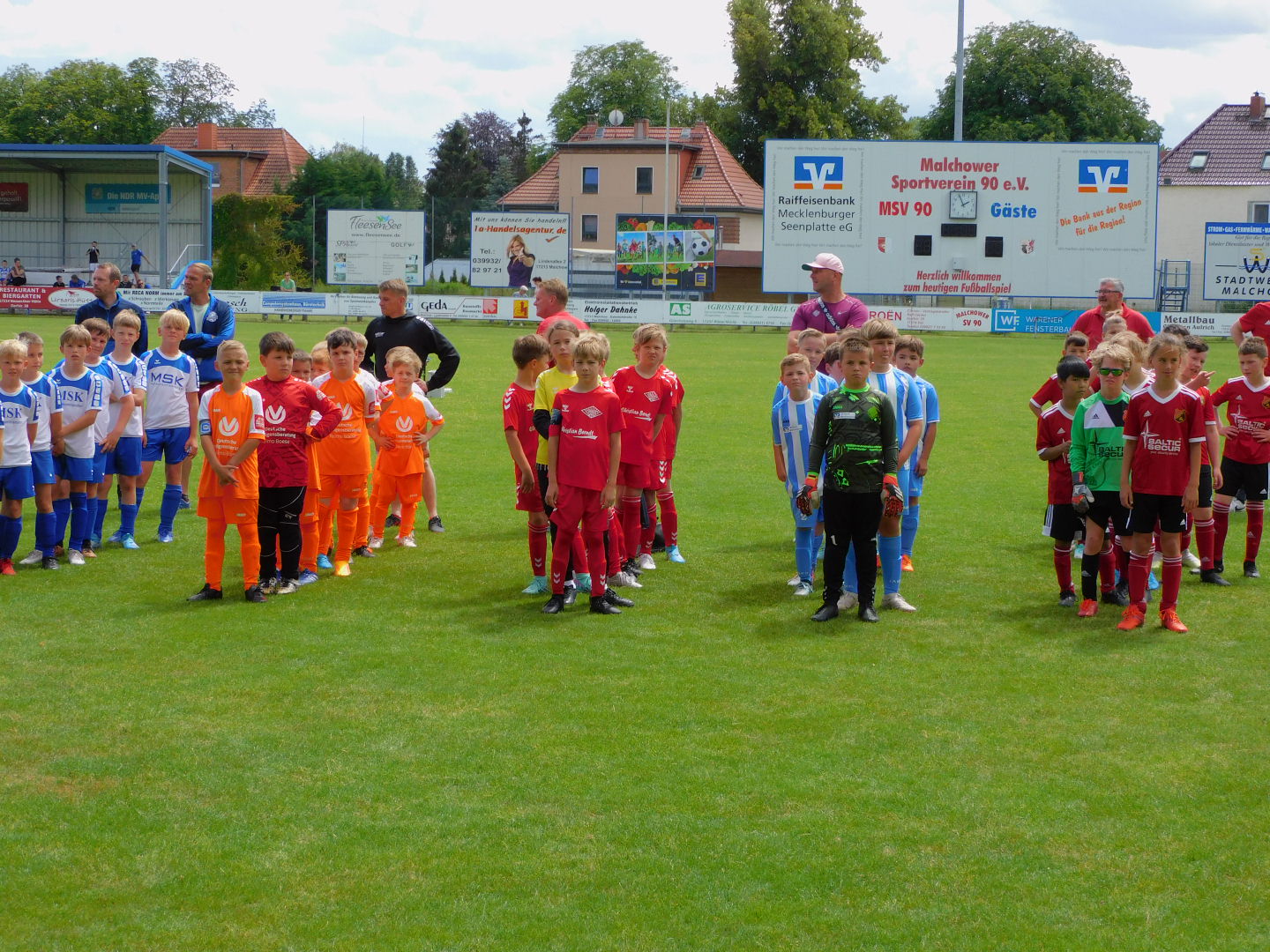 Am Samstag waren in der F-Jugend die Mannschaften Malchower SV 09, 1.FC Neubrandenburg, Sztorm Stettin, SV Waren 09, FSV 1919 Malchin sowie PSV Röbel am Start. Gespielt wurde auf zwei Spielfeldern vor der Haupttribüne. Die Spielzeit betrug 12 Minuten. Am Schluss setzten sich die Neubrandenburger knapp vor Malchin und Röbel durch.