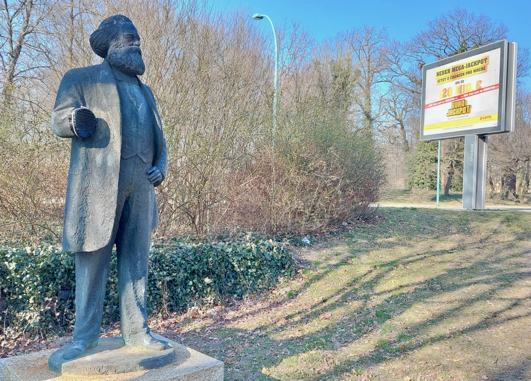 Die Marx-Statue des Berliner Bildhauers Gerhard Thieme (1928-2018) war 1969 als Auftragskunst nach Neubrandenburg gekommen, als die Stadt noch DDR-Bezirksstadt war. Sie steht nach umfangreichen Diskussionen über den Umgang mit DDR-Kunst seit wenigen Jahren in dem kleinen Park am Schwanenteich, der am Friedrich-Engels-Ring liegt.