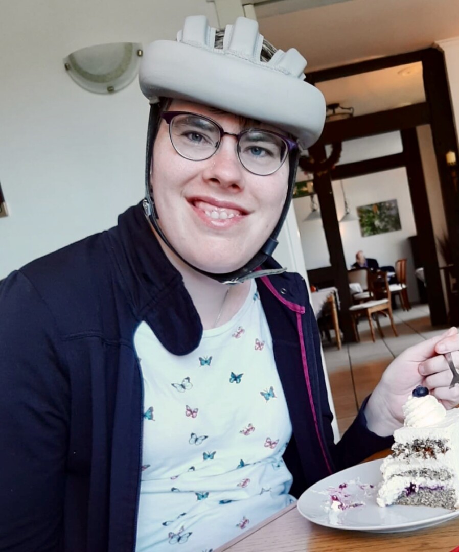 Anne-Kathrin ist eine lebensfrohe Frau, die bei ihren Eltern lebt. Neben der halbseitigen Lähmung plagt sie seit dem zehnten Lebensjahr eine Epilepsie, die mit Medikamenten nicht einzustellen ist. So kam es immer wieder zu Situationen, in denen sie sich bei Stürzen verschiedene Verletzungen und sogar Frakturen zugezogen hat. Aus diesem Grund trägt sie einen Kopfschutzhelm.