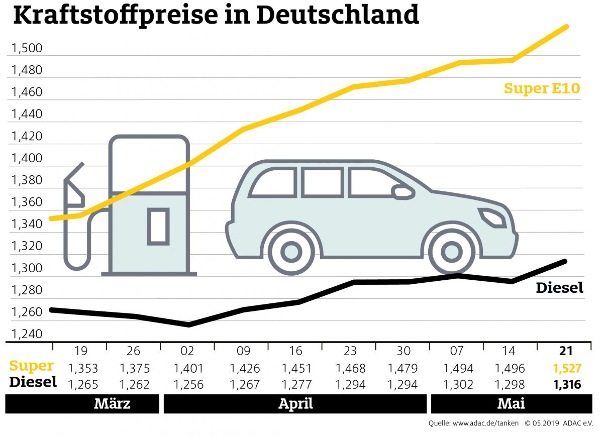 Der anhaltende Anstieg der Verbraucherpreise an den Tankstellen ist kritisch zu sehen. Denn trotz aller Bewegung auf den Weltmärkten liegen die Notierungen für Rohöl und Dollar heute wieder auf ähnlichem Niveau wie Mitte April. Somit ist Tanken derzeit zu teuer.