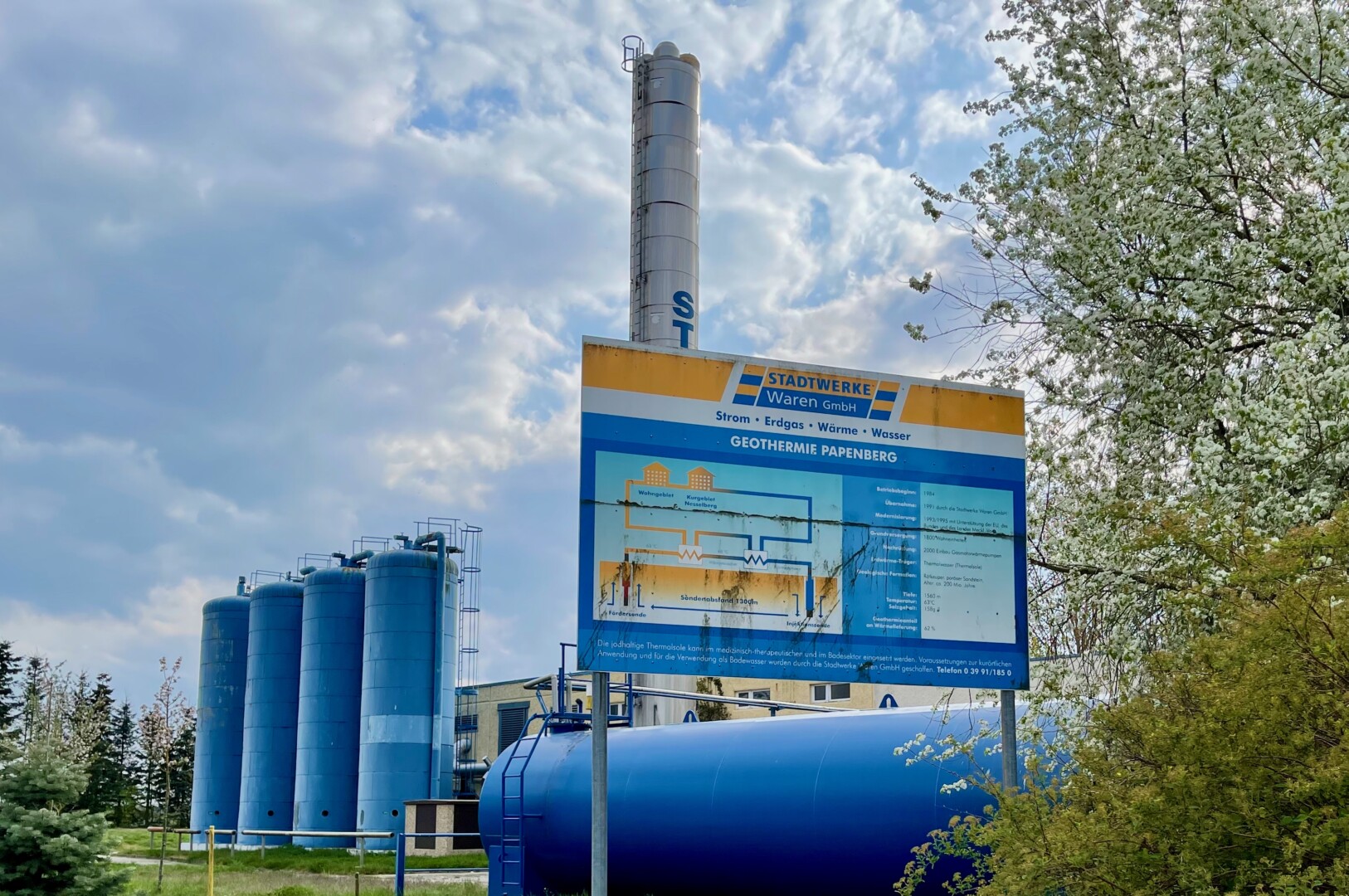 40 Jahr ist sie jetzt alt – die Geothermieanlage in Waren. Wie bei vielen anderen technischen Anlagen auch, arbeitet sie nicht ohne regelmäßige Betreuung und Pflege. Gerade die beiden Bohrungen unterliegen durch ihre Tiefe bis zu 1.560 Metern nicht nur den Einflüssen infolge des täglichen Betriebs, sondern müssen auf ihre Standsicherheit überprüft werden. Da stetig ca. 60 m³/h aus der Tiefe entnommen und wieder zurückgespeist werden, kommt es auch zu Ablagerungen von Mineralien an den Rohrwänden. Deshalb hat die Stadtwerke Waren GmbH so genannte Workover-Arbeiten an der Bohrung beauftragt, um die Perforationslöcher zu reinigen und die Bohrung wieder in vollem Umfang betreiben zu können.