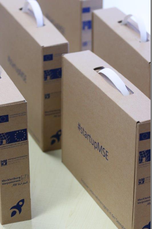 Im Vorfeld des Kickoff erhielten die teilnehmenden Schulen ein hochwertiges Videotelefonie-Set und für alle Schüler*innen im Projekt einen „#startupMSE Koffer“ mit wichtigen Gründungsleitfäden, Startup-Magazinen, einem digitalen Lehrbuch des Projektpartners NFTE, ein Armband mit USB- Speicher, ein Induktiv-Charger für das Smartphone als Recherchewerkzeug sowie Bluetooth- Kopfhörer für die Nutzung der Videocasts des Partners Startupteens.