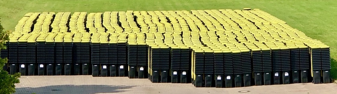 Nun haben wir auch noch diese riesige häßliche Tonne auf dem Hof herumstehen. Wie wär’s mit noch drei riesigen Tonnen für grünes, braunes und weißes Glas für jeden Haushalt?