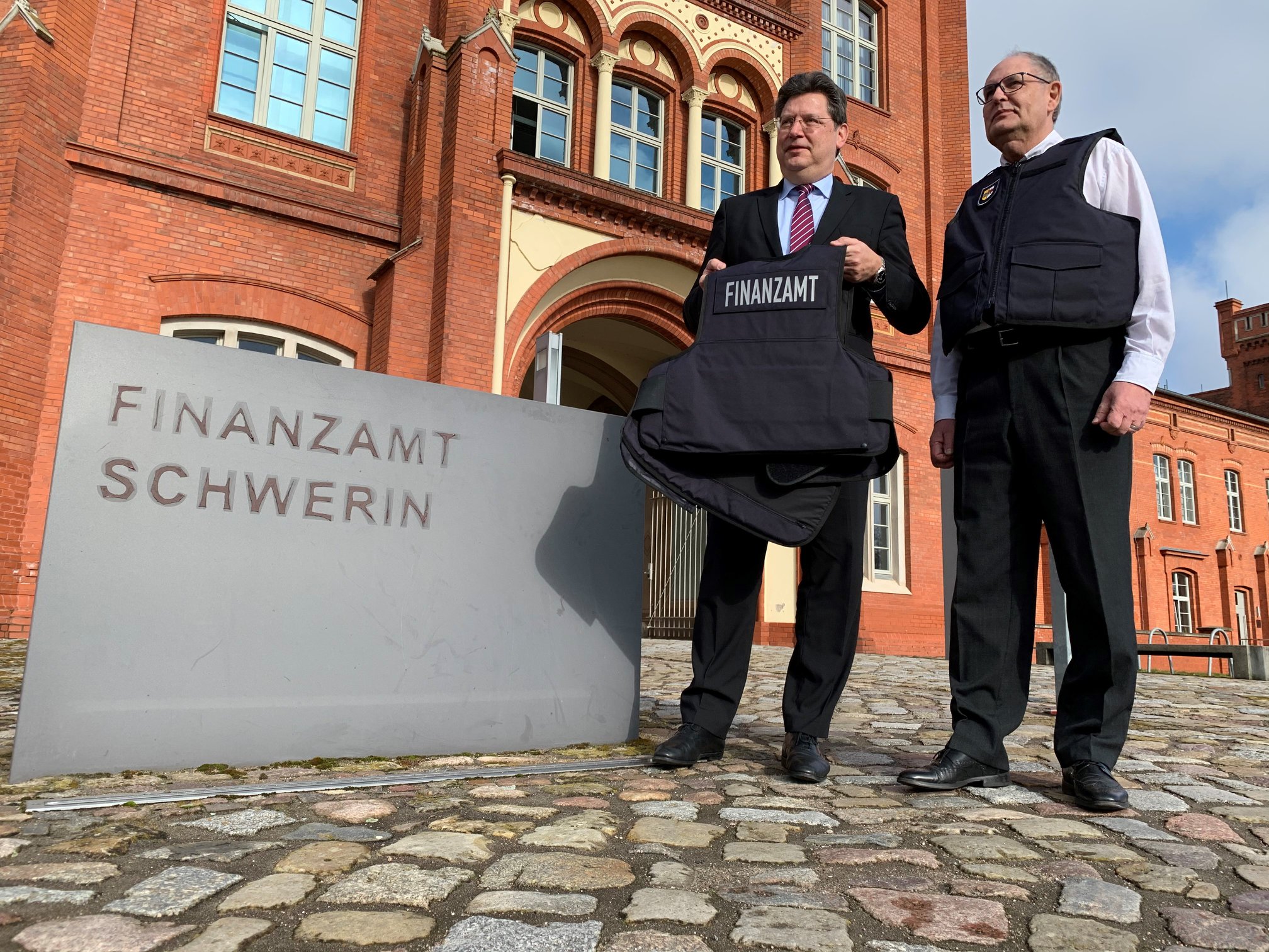 Die Steuerfahnder in Mecklenburg-Vorpommern sind erstmals mit Schutzwesten ausgestattet worden. Finanzminister Reinhard Meyer präsentierte die schuss- und stichsicheren Westen gestern in Schwerin. In den vergangenen Jahren ist eine besorgniserregende Entwicklung zu beobachten: Immer häufiger finden Steuerfahnder bei Durchsuchungen Waffen. Viele Mitarbeiter ziehen daher bei Einsätzen die Polizei hinzu. Auch um das Sicherheitsgefühl zu stärken, sind daher für alle Beschäftigten in den Strafsachen- und Steuerfahndungsstellen Schutzwesten beschafft worden.