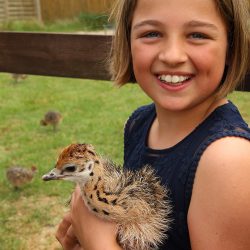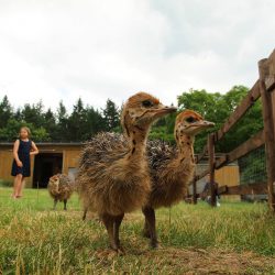 Seit April 2017 betreibt der 33-jährige Tom Hennicke den Hof und freut sich über die kleinen Schätze. Die neunjährige Hedi aus Vipperow durfte sich heute die kleinen Küken gleich nach der Ankunft anschauen, in die Hand nehmen und streicheln. Neugierig pickten die kleinen Strauße an ihren Schnürsenkel herum.