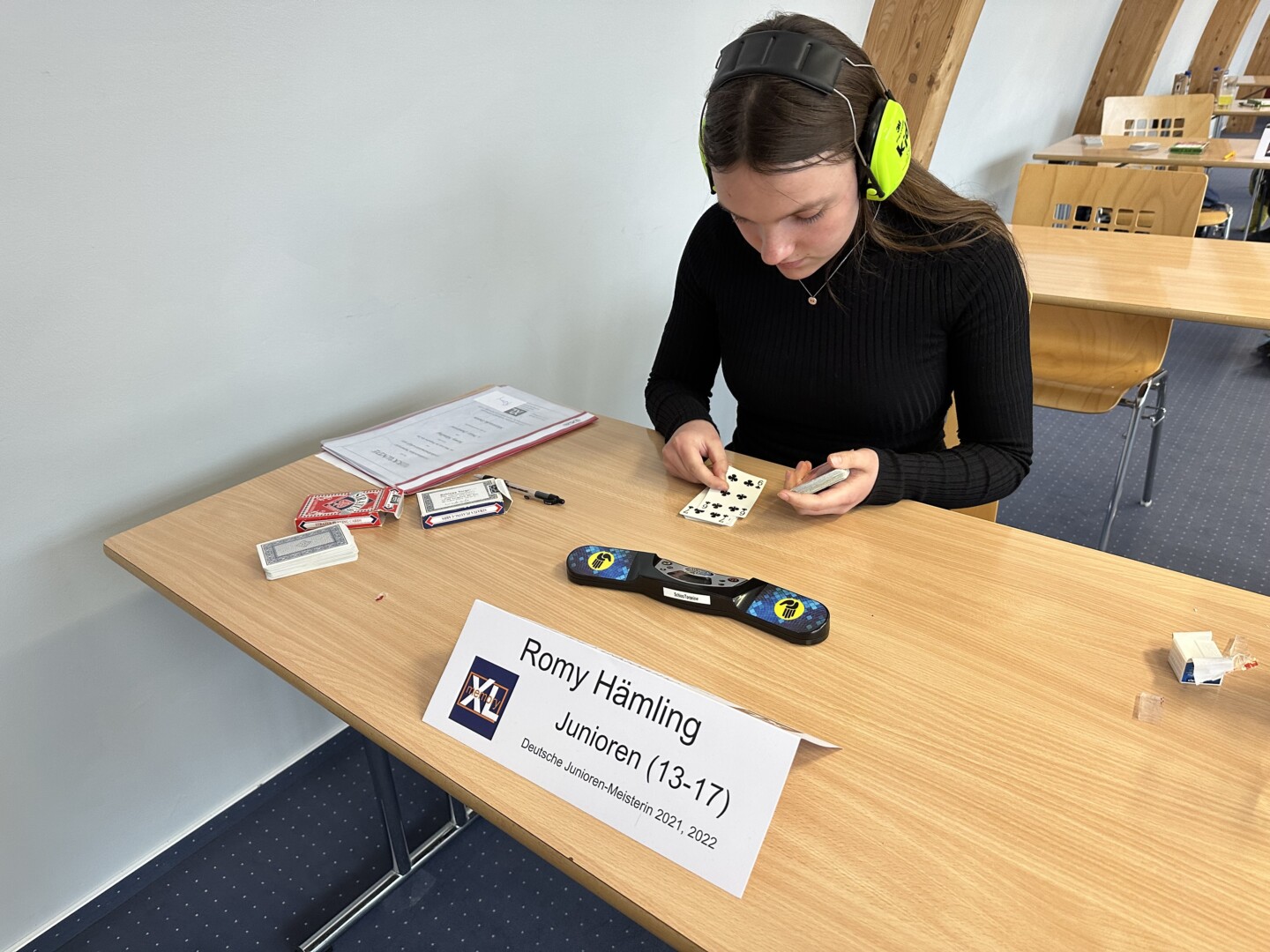 Romy entschied bei den Junioren sechs der sieben Disziplinen für sich und dominierte das Feld von Beginn an. Lediglich in der Disziplin „Images“ musste sich Romy trotz einer eigenen persönlichen Bestleistung dem Zweitplatzierten Christopher Lindenberg (14 Jahre, Neuss) geschlagen geben. Christopher Lindenberg gelang es, sich in fünf Minuten die Reihenfolge von 299 Bildern einzuprägen und stellte hiermit einen neuen Deutschen Juniorenrekord auf.