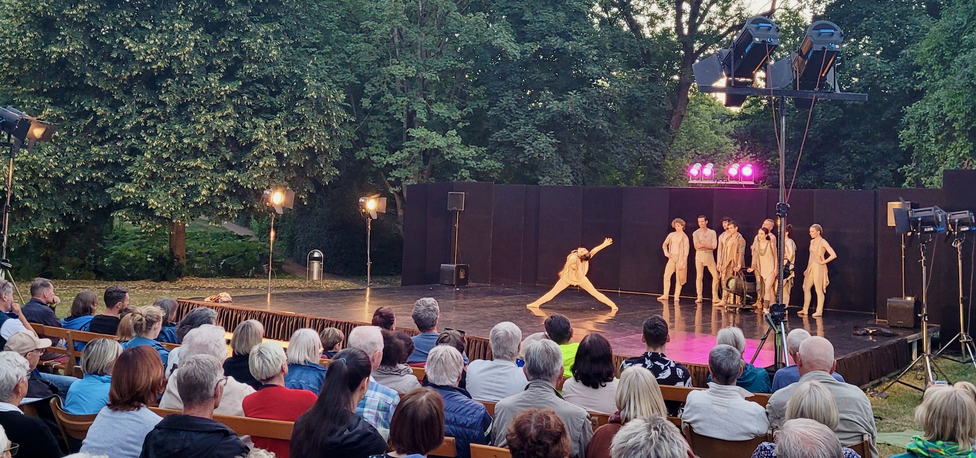 Gleich zwei Jubiläen waren Anlass für die Ausrichtung des „Tanzfestes“ der Deutschen Tanzkompanie im malerischen Park des Schliemann-Museums in Ankershagen. Heinrich Schliemann wäre in diesem Jahr 200 Jahre alt geworden und die Deutsche Tanzkompanie feiert ihr dreißigjähriges Bestehen. Sowohl Heinrich Schliemann, dessen facettenreiches Leben und Wirken im Ankershagener Museum präsentiert wird, als auch die Deutsche Tanzkompanie haben ein ausgeprägtes Interesse am Historischen und sind zugleich der Gegenwart verpflichtet. Da lag es nahe, gemeinsam ein Fest zu gestalten, bei dem sich Geschichte, Mythen und Tanz am Ort der Kindheit des Forschers zu einem abwechslungsreichen Programm in neuem Rahmen verbinden.