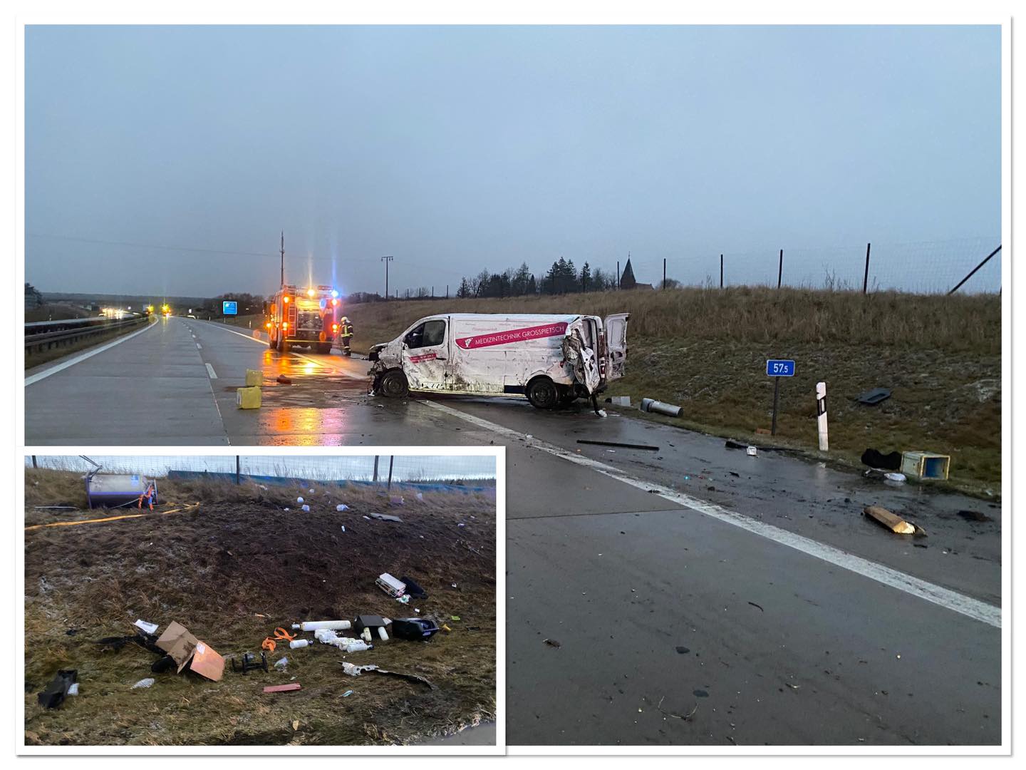 Es entstand ein Sachschaden von ca. 17.000 Euro. Die A19 war zwischen der AS Malchow und AS Linstow in Richtung Rostock für ca. drei Stunden voll gesperrt.