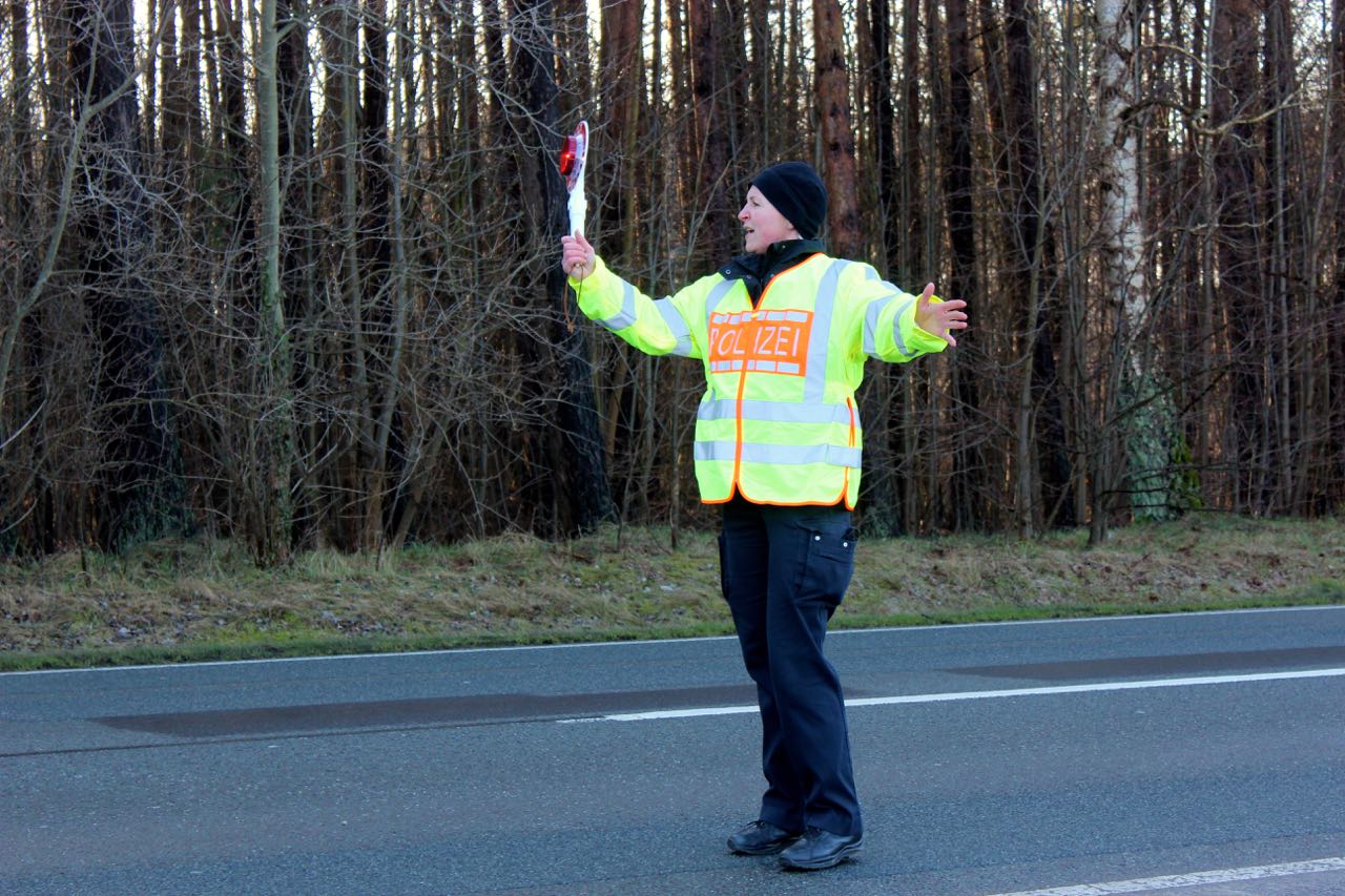 Am frühen Vormittag dann ein anderer Kontrollpunkt. Wer von der Shell-Tankstelle West nach rechts auf die B 192 in Richtung Röbel biegt, MUSS anhalten. Das macht ein Stopp-Schild klar. Doch gerade an dieser Stelle rollen viele Wagen ohne Stopp auf die Bundesstraße. Ein paar Meter weiter werden sie Polizeiobermeisterin Jessica Krüger und Polizeioberkommissar David Wahl heraus gewunken. Die meisten wissen sehr schnell, was sie falsch gemacht haben und zahlen, zwar zähneknirschend, die fälligen 10 Euro.