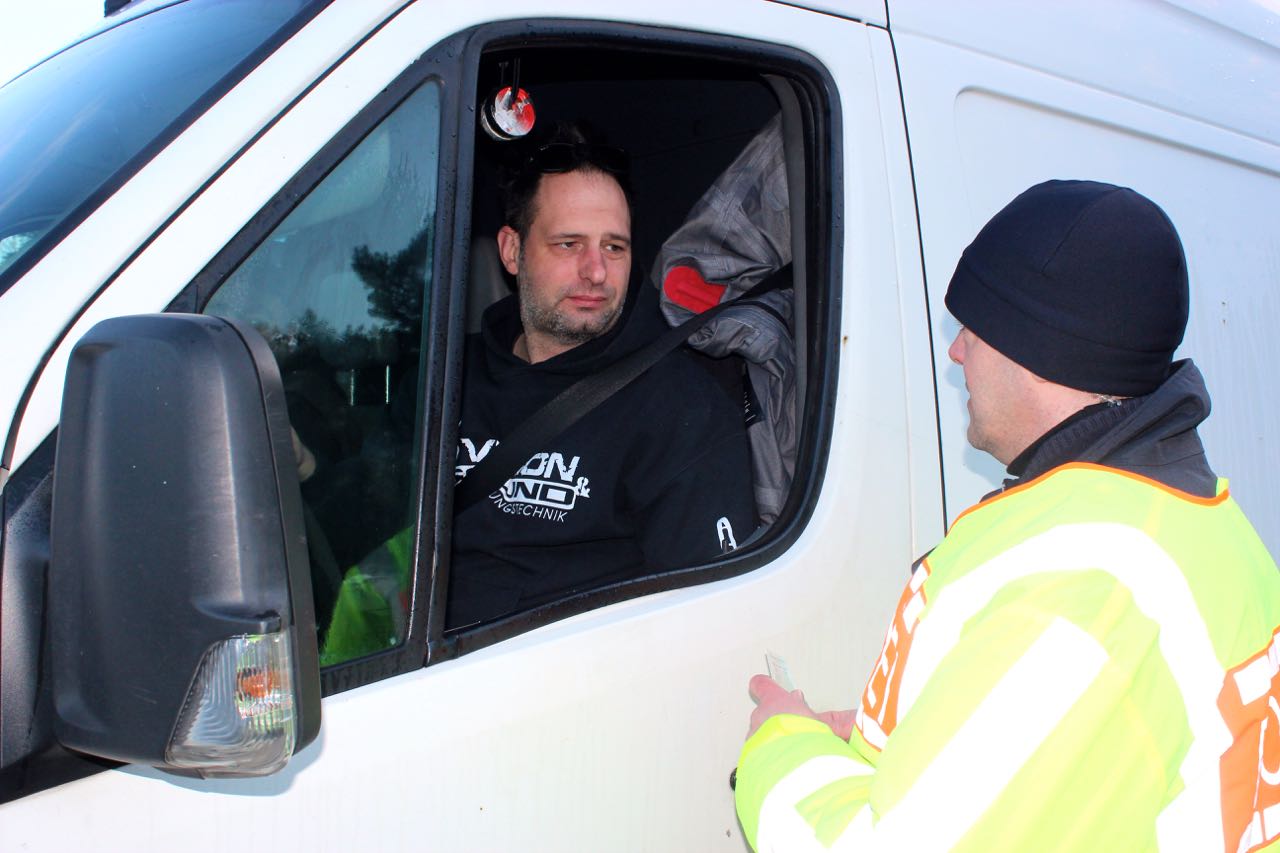 Ein anderer Herr ist sich allerdings keiner Schuld bewusst. „Ich habe am Stoppschild gehalten, denn ich musste einen Radfahrer vorbei lassen“, sagt er, ehe die Polizisten ihm sagen können, warum sie ihn gestoppt haben. „Unsere Kollegen haben gesehen, dass Sie ein Handy in der Hand hatten. Und das ist verboten“, klärt ihn David Wahlen auf. Der Mann gibt zu, mal kurz das Handy in der Hand gehalten zu haben, aber nicht, um zu telefonieren, sondern nur, um schnell etwas zu gucken. Aber auch das, so der Polizeioberkommissar, ist nicht erlaubt. „Zu Recht, denn jede Sekunde Unaufmerksamkeit kann verheerende Auswirkungen haben“, erklärt der Beamte. Für den Ertappten wird’s teuer: 100 Euro und ein Punkt.