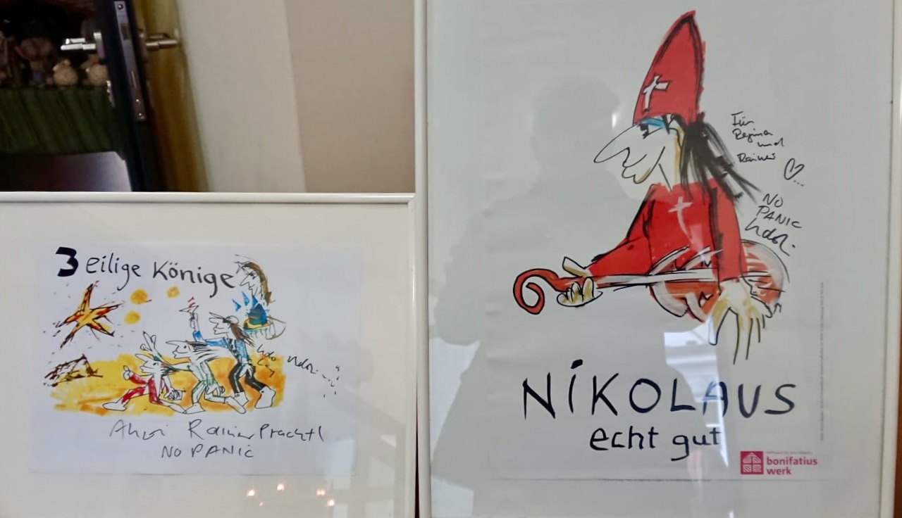 „Für Regina und Rainer – no Panic, Udo“ steht auf einer Grafik im Dreikönigshospiz. Tatsächlich: Sänger Udo Lindenberg hat dem Neubrandenburger Dreikönigsverein zwei Zeichnungen geschenkt. Die Arbeiten der „Drei eiligen Könige“ und des „Nikolaus“ sollen nicht für viel Geld „versilbert“ werden, sondern einen Platz in dem Haus bekommen, in dem seit 17 Jahren Menschen auf ihrem letzten Lebensabschnitt begleitet werden. Ein Pastor aus Hamburg hatte Regina und Rainer Prachtl den Kontakt zu Udo Lindenberg vermittelt. „Wir werden die Grafiken so platzieren, dass sie für alle sichtbar sind“, erläutert die neue Hospizleiterin Beate Gogacz.