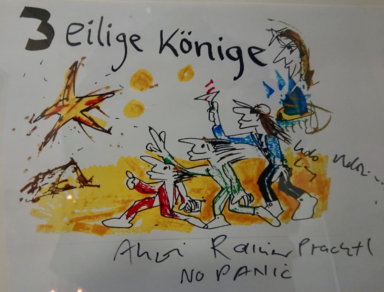 „Für Regina und Rainer – no Panic, Udo“ steht auf einer Grafik im Dreikönigshospiz. Tatsächlich: Sänger Udo Lindenberg hat dem Neubrandenburger Dreikönigsverein zwei Zeichnungen geschenkt. Die Arbeiten der „Drei eiligen Könige“ und des „Nikolaus“ sollen nicht für viel Geld „versilbert“ werden, sondern einen Platz in dem Haus bekommen, in dem seit 17 Jahren Menschen auf ihrem letzten Lebensabschnitt begleitet werden. Ein Pastor aus Hamburg hatte Regina und Rainer Prachtl den Kontakt zu Udo Lindenberg vermittelt. „Wir werden die Grafiken so platzieren, dass sie für alle sichtbar sind“, erläutert die neue Hospizleiterin Beate Gogacz.