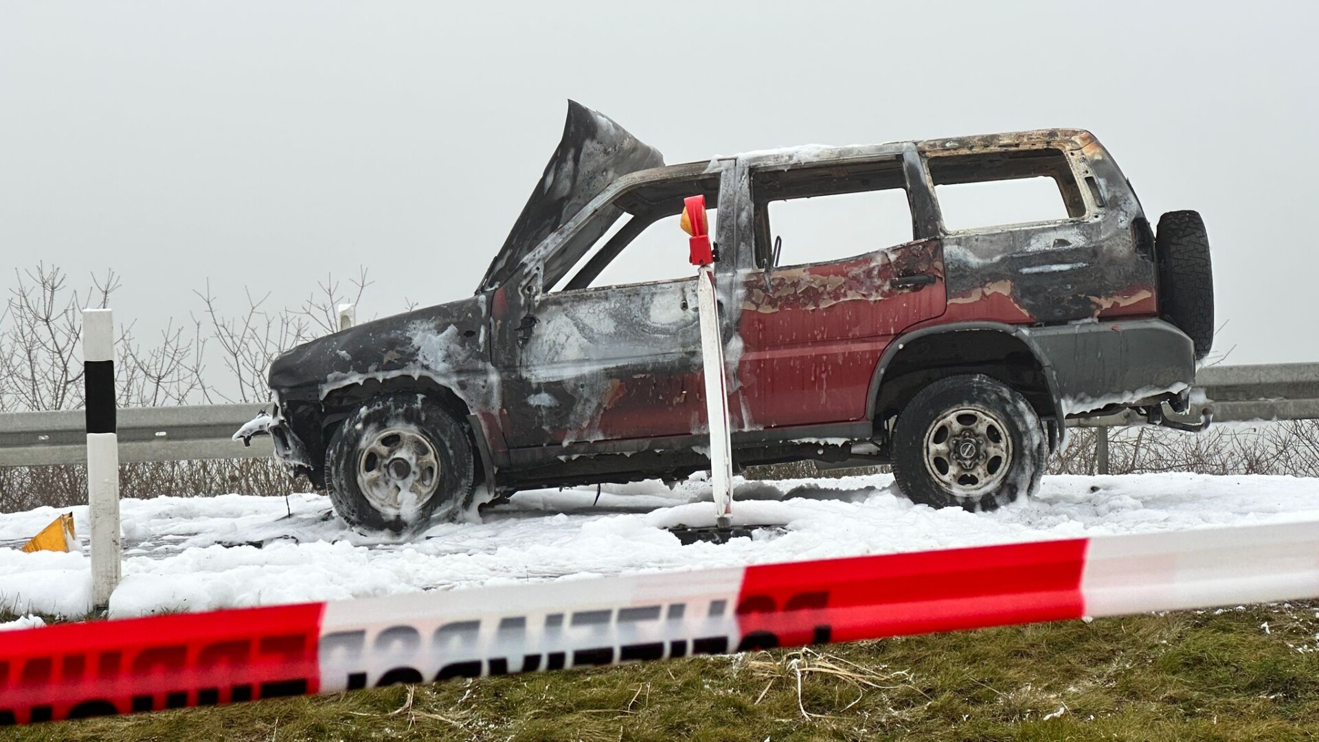 Nach derzeitigem Kenntnisstand handelt es sich bei dem Fluchtfahrzeug um einen Transporter der Marke Mercedes, der über der Stoßstange am Heck eine rot-weiße Baumarkierung über gesamte die Fahrzeugbreite hatte. Als Kennzeichenfragmente sind DM-RS … bekannt. Ob die Kennzeichen entwendet wurden, kann derzeit nicht gesagt werden.
