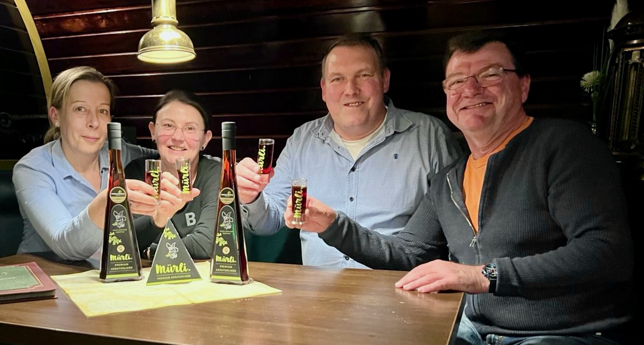 Foto oben: Stoßen auf die Übernahme der Mürli GmbH an: Adina Wiechmann, Angelika Wagner-Schnurrbusch, Tino Wiechmann und Jörg Schnurrbusch (von links).