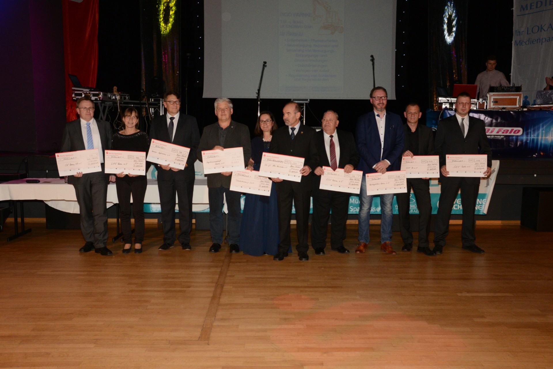 Zum Abschluss der Auszeichnungen beim Sportlerball in Waren gab es noch eine tolle Überraschung: Verschiedene Sponsoren haben insgesamt 5000 Euro gespendet und die gehen an zehn Vereine der Stadt, die das Geld vor allem den Kindern und Jugendlichen zukommen lassen wollen.