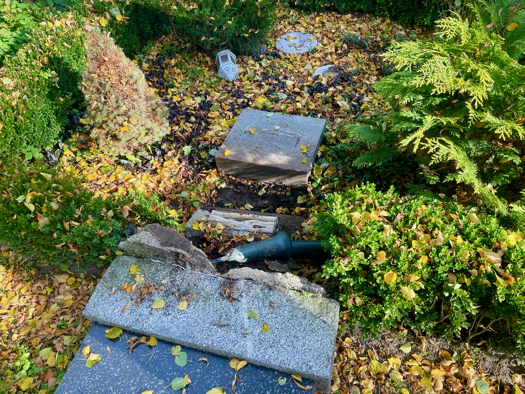 Da fehlen einem die Worte. Wer tut denn sowas. Man könnte denken diese Leute, die in ihrer Zerstörungswut nicht mal vor einem Friedhof Halt machen, einfach nichts als Grütze im Kopf haben und nicht über das was sie tun nur einen Moment nachdenken.