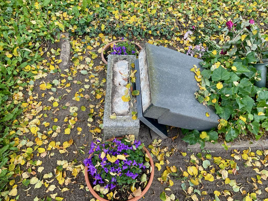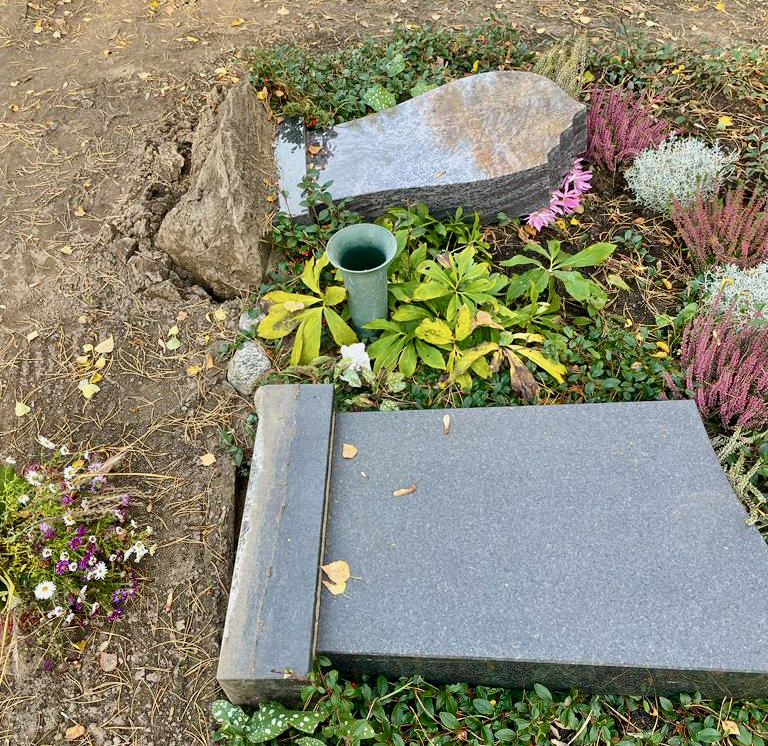 Was die Täter sicher am meisten ärgert: Die Toten kümmert das nicht die Bohne, denen ist es wurscht. Ich selbst habe für meine Lieben einen liegenden Stein gewählt. Was schon liegt, kann nicht fallen. Überdies hat man seine Angehörigen im Herzen.