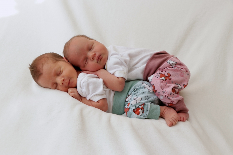 Keno, 24.02.2019, 01:03 Uhr, 47 cm, 2320 g, und Jonna, 24.02.2019, 02:28 Uhr, 47 cm, 2660 g, Priborn, Eltern: Tina und Andy, Priborn