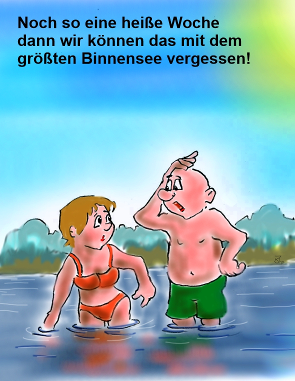 Auch unser Zeichner Joachim Kluge macht sich langsam Sorgen über den niedrigen Wasserstand unserer Seen: