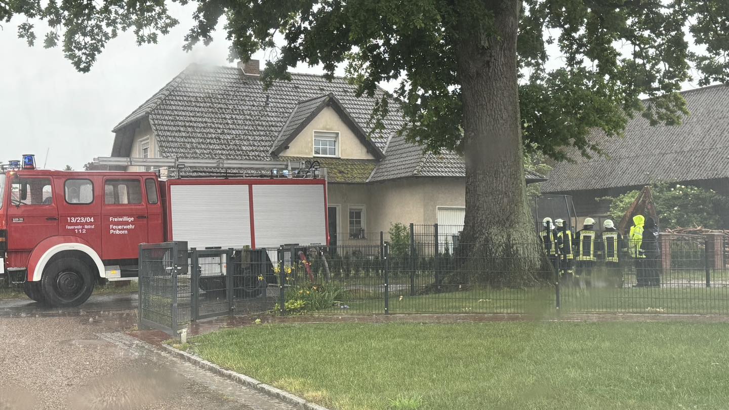 Ein schweres Unwetter tobt sich aktuell im Süden der Seenplatte aus. Vor etwa einer Stunde zog die gewaltige Front aus Brandenburg kommend bis nach Mecklenburg-Vorpommern. Ein Blitz schlug dabei in ein Einfamilienhaus in Priborn ein. Die Feuerwehr ist mit einem Großaufgebot vor Ort. Unterdessen warnt die Autobahnpolizei vor Aquaplaning auf den Bundesautobahnen A19 und A24.