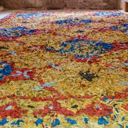 Kandidaten sind die Mecklenburgerinnen Ramona Seyfarth und Daniela Melzig. Seyfarth hat Schnipsel alter Werbeprospekte zu einem Teppich formiert, auf den Gäste herumtreten und ihn so verändern.