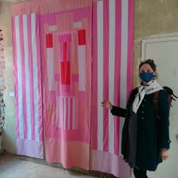 Dazu kommen Jürgen Hohmann (Kassel) und Kerstin Bruchhäuser (Hamburg), die ihre Textilkunst „Pink Bojagit“ aus Baumwolle, Leinen und Batist aufgehängt hat.