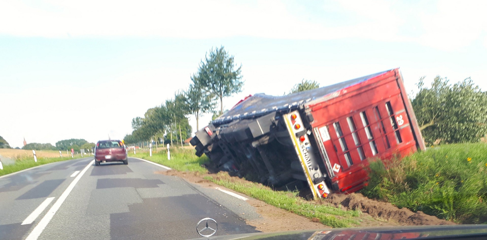 Zwischen Penkow und Malchow ist ein Lkw von der Straße abgekommen und im Graben gelandet.