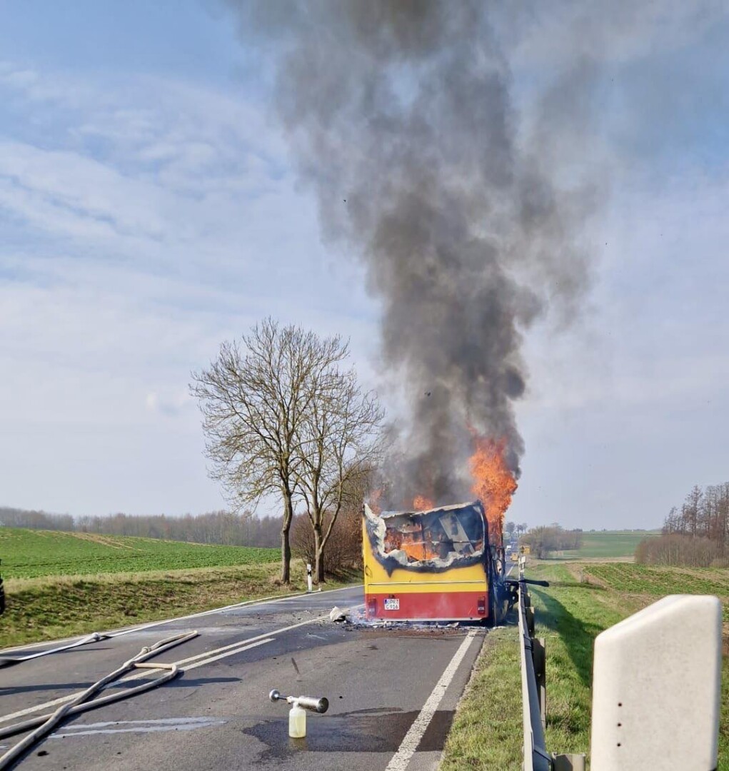 Im Rahmen von ersten Löschversuchen durch Helfer vor Ort wurde eine Person leicht an der Hand verletzt, konnte jedoch nach ärztlicher Behandlung durch einen Rettungswagen wieder entlassen werden. Umliegende Freiwillige Feuerwehren waren mit insgesamt 26 Kameraden im Einsatz und konnten das Feuer vollständig löschen. Das Fahrzeugwrack musste durch ein Bergungsunternehmen von der Straße entfernt werden. Die B192 war für den gesamten Zeitraum vollgesperrt und ab 14:30 Uhr nach Beendigung aller Maßnahmen wieder frei befahrbar. Auf dem Anhänger waren mehrere Snackautomaten für die Herstellung von Popcorn, Nachos und Zuckerwatte geladen. Es entstand ein Schaden in Höhe von 15.000 Euro.