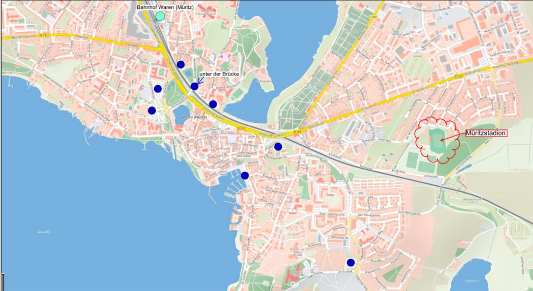 Am kommenden Sonnabend, 24. Mai, sollten die Warener ihre Autos besser in der Garage oder auf dem Stellplatz lassen. Um 14.30 Uhr wird das Landespokal-Spiel zwischen Hansa Rostock und dem SV Pastow im Müritzstadion angepfiffen. Wie der Landesfußballverband gegenüber „Wir sind Müritzer“ bestätigte, werden rund 3100 Zuschauer aus allen Himmelsrichtungen erwartet. Und das hat natürlich Auswirkungen auf den Verkehr in der Müritzstadt. Am Finaltag wird es laut Stadtverwaltung nicht möglich sein, von der Eichholzstraße zum Müritzstadion einzufahren. Der Parkplatz vor dem Müritzstadion wird vom Veranstalter benötigt, kann also nicht genutzt werden. Die Eichholzstraße wird am 24. Mai ab der Kreismusikschule als Einbahnstraße bis zur Kreuzung „Zum Kiebitzberg“ befahrbar sein. Dadurch soll ein gefahrloses straßenbegleitetes Parken ermöglicht werden. Diese Parkplätze werden jedoch bei weitem nicht ausreichen. Die Stadtverwaltung bittet daher ortsansässige Stadionbesucher, möglichst nicht mit dem Pkw anzureisen. Auswärtige Zuschauer werden gebeten, die städtischen Parkplätze zu nutzen, von denen das Stadion fußläufig zu erreichen ist. Eine Übersicht der infrage kommenden Parkplätze kann dem unten stehenden Plan entnommen werden.