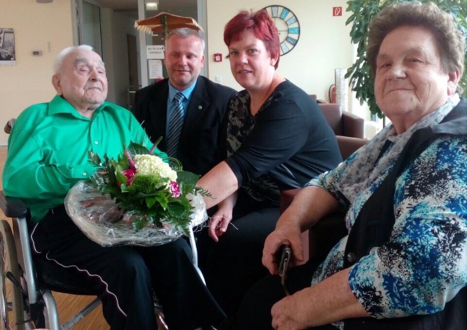 Zu den Gratulanten gehörten neben der langjährigen Bekannten Marianna Drolshagen auch Enkelin Sandra und Grabowhöfes Bürgermeister Enrico Malow. Denn bis zu seinem 100. Geburtstag lebte Paul Galla noch in seiner Gemeinde.