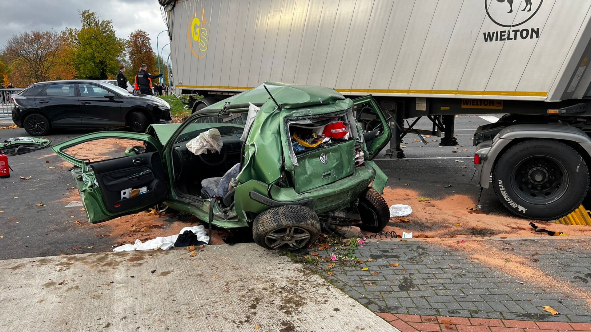 Der grüne VW wurde durch den Lkw auf die gegenüberliegende Fahrspur geschoben, wo beide zum Stehen kamen. Durch den Zusammenstoß wurde der 91-jährige Fahrzeugführer eingeklemmt und musste durch die Berufsfeuerwehr Neubrandenburg befreit werden. Seine 71-jährige Beifahrerin konnte durch Ersthelfer aus dem Pkw geborgen werden. Beide wurden bei dem Unfall so schwer verletzt, dass sie ins Klinikum Neubrandenburg eingeliefert werden musste. Der 91-Jährige mit dem Rettungshubschrauber und die 71-Jährige mit dem Rettungswagen. Beide wurden dort stationär aufgenommen.