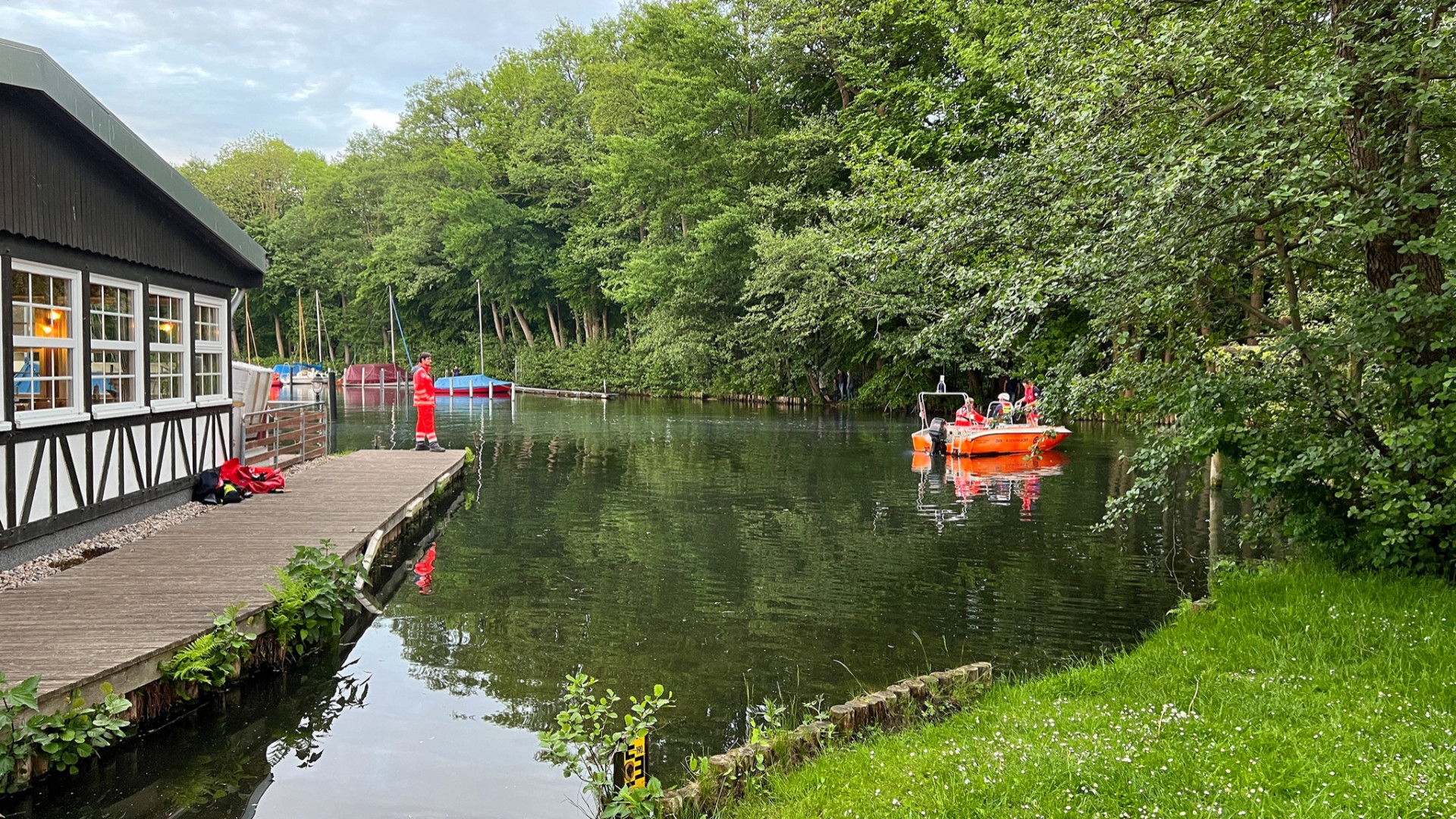 Währenddessen suchten die Einsatzkräfte den See rund um die kleine Gaststätte ab – zunächst erfolglos. Gegen 20:30 Uhr trafen Taucher der Feuerwehr Potsdam am Einsatzort ein. Nur wenige Augenblicke später entdeckte ein Taucher der Wasserwacht den leblosen Körper auf dem Grund des Sees, unweit der Steganlage. Ein Notarzt konnte nur noch den Tod des kleinen Mädchens feststellen.