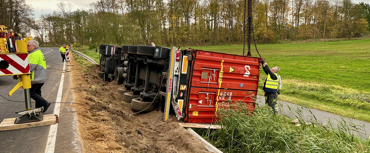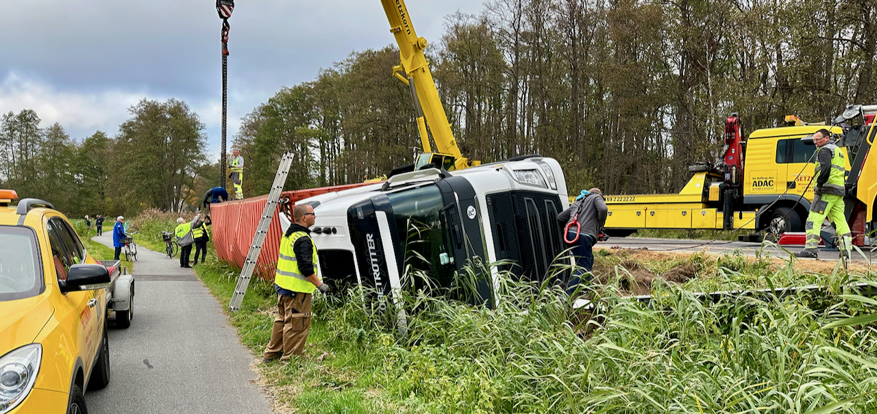 Heute Morgen gegen 6 Uhr ist auf der B198 zwischen Leizen und Dambeck ein 42-jähriger polnische Lkw-Fahrer aus bisher ungeklärter Ursache rechts von der Straße ab gekommen, durchbrach die Schutzplanke und stürzte anschließend auf die Seite. Der Fahrer blieb glücklicherweise unverletzt. Seit 10.30 Uhr läuft die Bergung des verunglückten Lkw. Der mit rund 23 Tonnen beladene Lkw soll bis 15 Uhr geborgen sein.