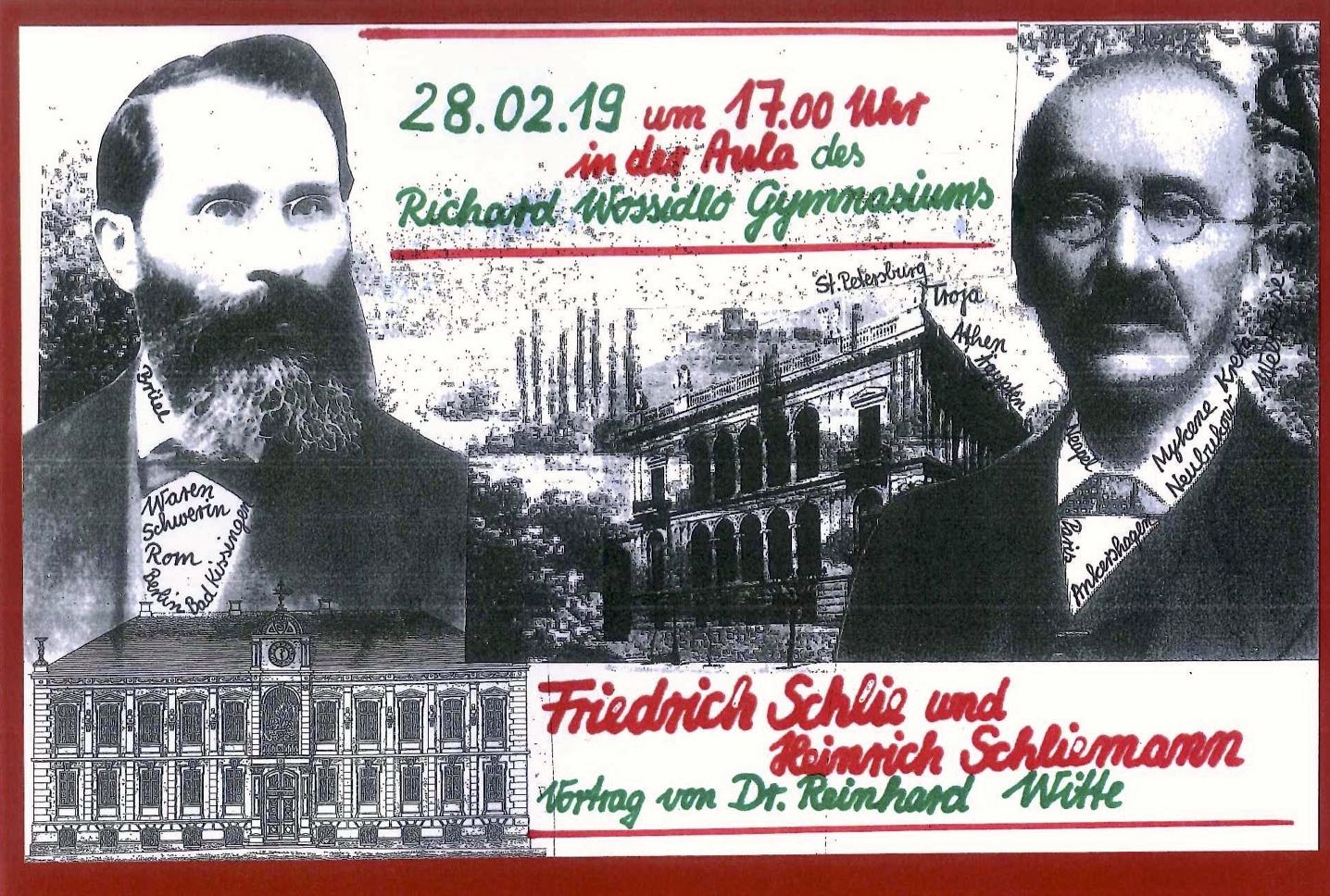 Das Warener Gymnasium feiert in diesem Jahr den 150. Geburtstag und hat verschiedenen Veranstaltungen organisiert. Am morgigen Donnerstag, 28. Februar, erzählt der Vorsitzende der Heinrich-Schliemann-Gesellschaft, Dr. Reinhard Witte, viel Interessantes über Friedrich Schlie und Heinrich Schliemann.