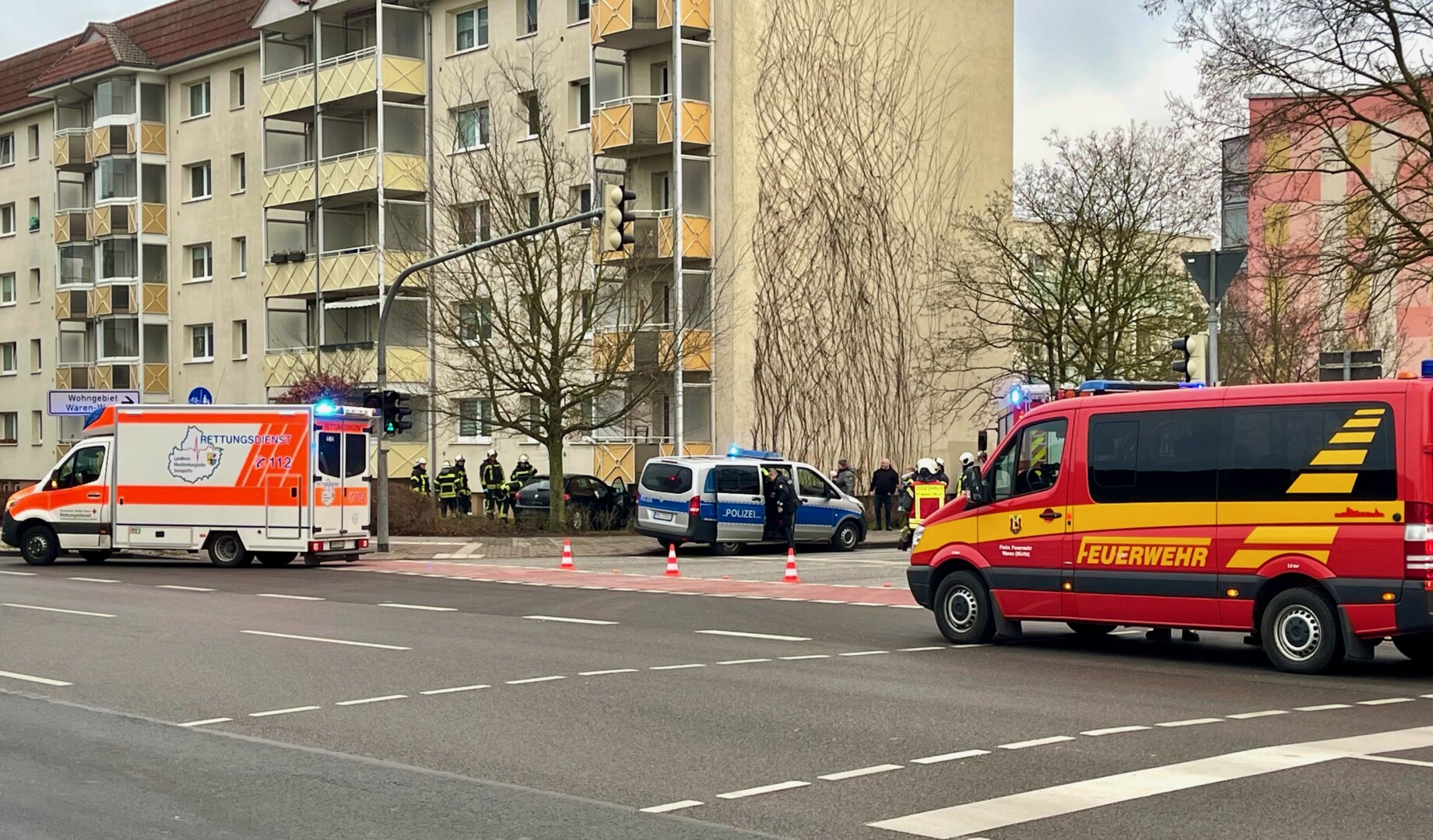 Ungewöhnlicher Unfall heute früh in der Röbeler Chaussee in Waren: Eine 35 Jahre alte Autofahrerin ist aus bislang nicht geklärter Ursache mit ihrem Seat von der Straße abgekommen, fuhr über einen Gehweg sowie eine Hecke und krachte unter einen Balkon. Nach ersten Informationen der Polizei erlitt die Frau dabei leichte Verletzungen und wurde ins Müritz-Klinikum gebracht. Im Einsatz waren neben Rettungsdienst und Polizei auch Warens Feuerwehrleute. Der entstandene Schaden wird auf mindestens 6000 Euro geschätzt.