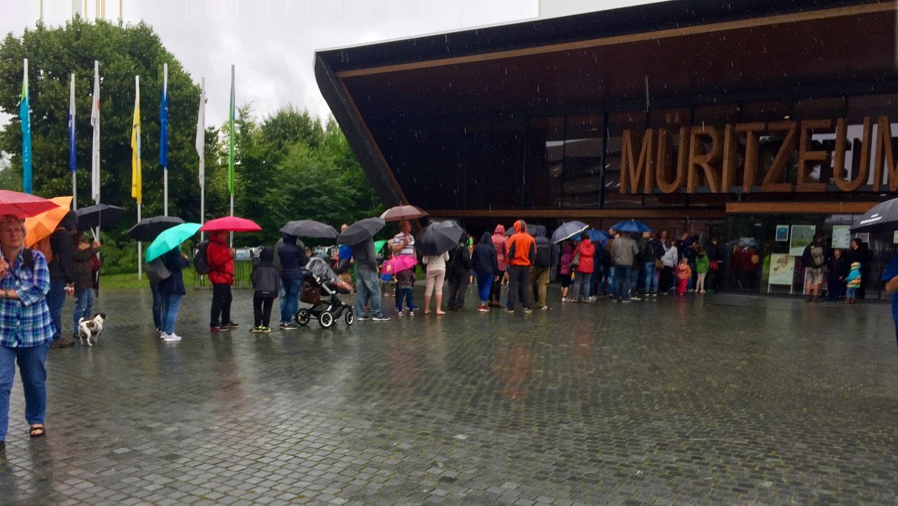 Foto im Text: Lange Schlangen an den Regentagen im Sommer vor dem Müritzeum.