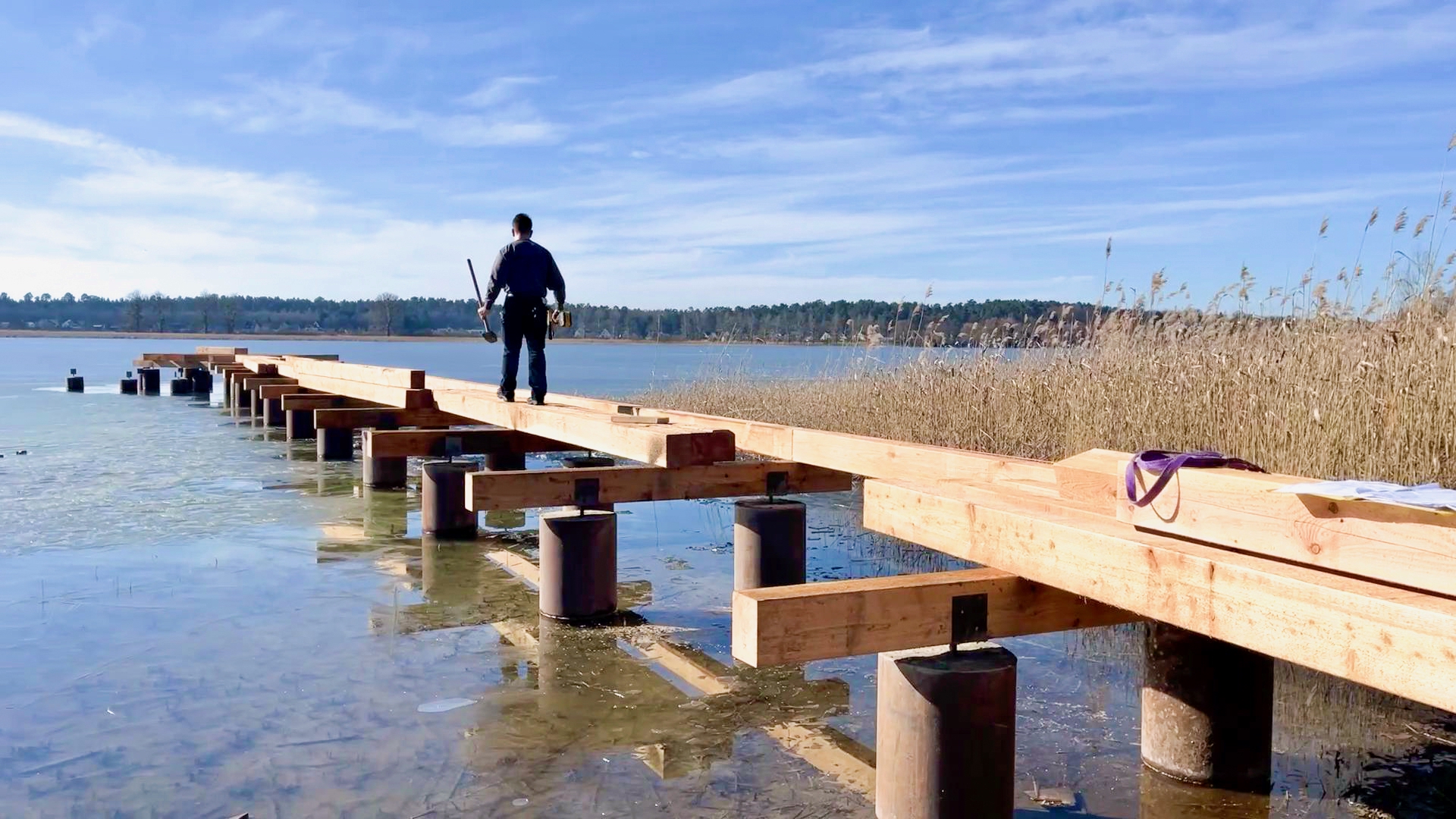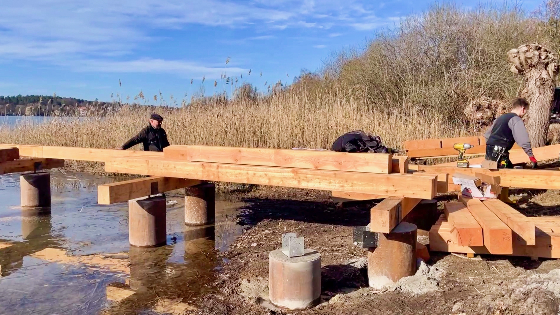 Das wird was. Der neue Steg am Naturbad Feisneck sowie der Wasservögel-Beobachtungsplattform gegenüber wachsen täglich. Die Mitarbeiter der Mirower Firma Krumm haben beide Projekte gleichzeitig in Angriff genommen und kommen sehr gut voran . Und so sieht es ganz danach aus, dass beide Stege – so wie von der Stadtverwaltung versprochen – rechtzeitig zur Badesaison fertig werden.