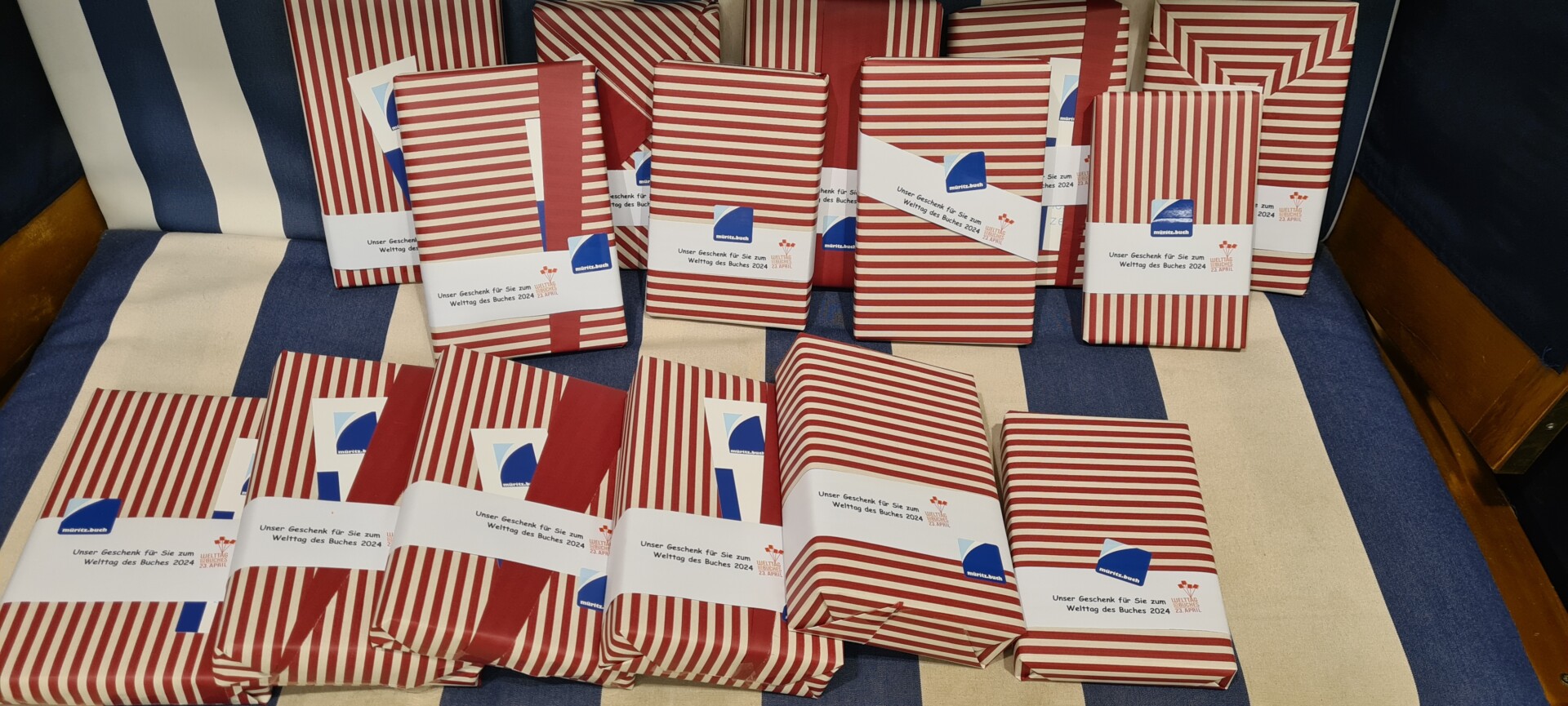 Außerdem werden durch die Mitarbeiterinnen der Buchhandlung am Morgen des 23. April Bücher in der Innenstadt verteilt. Wer ein Buchpäckchen in der Stadt findet, darf es einfach mitnehmen und lesen. „Also, achten Sie auf Päckchen, die in rot-weiß gestreiftem Papier verpackt sind. Und für Frühaufsteher: Ein paar Hinweise zu den Verstecken werden am Morgen des 23. April bei Instagram und Facebook hochgeladen“, heißt es von den Mitarbeiterinnen.