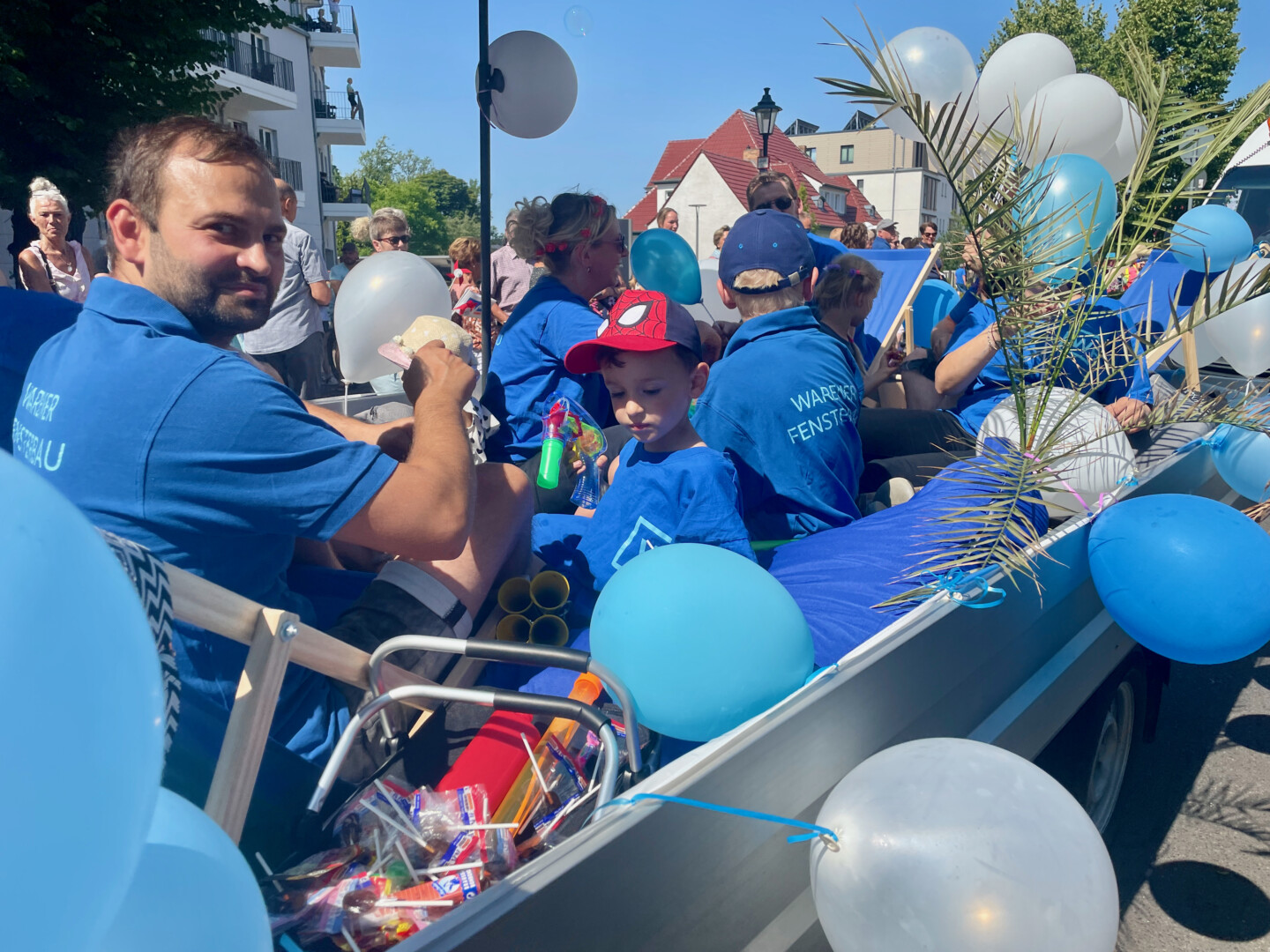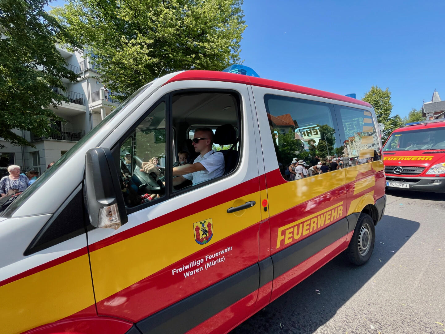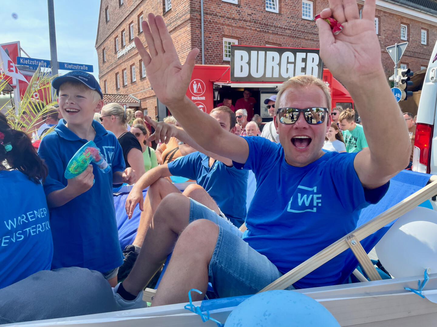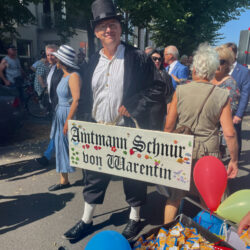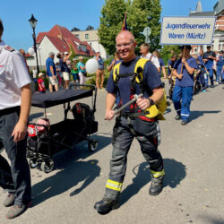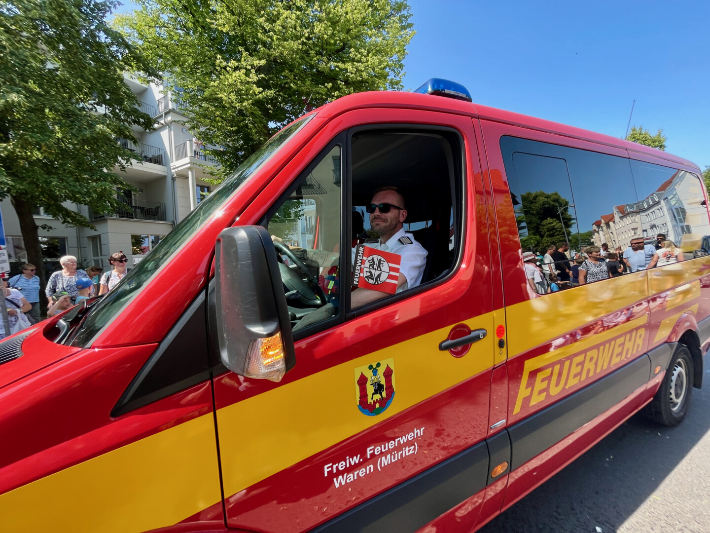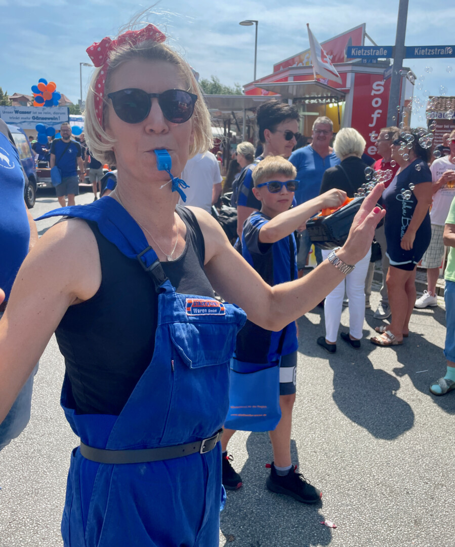 Fast 40 Unternehmen, Vereine und Verbände zogen heute bei brütender Hitze durch Waren und begeisterten die vielen Zuschauer am Straßenrand. Die Schattenplätze links und rechts der Fahrbahn waren heiß begehrt. Und auch wenn der eine oder andere Zuschauer versuchte, Vergleiche mit anderen Städten zu ziehen – wir machen’s nicht und sagen eindeutig: Es war ein toller Umzug.
