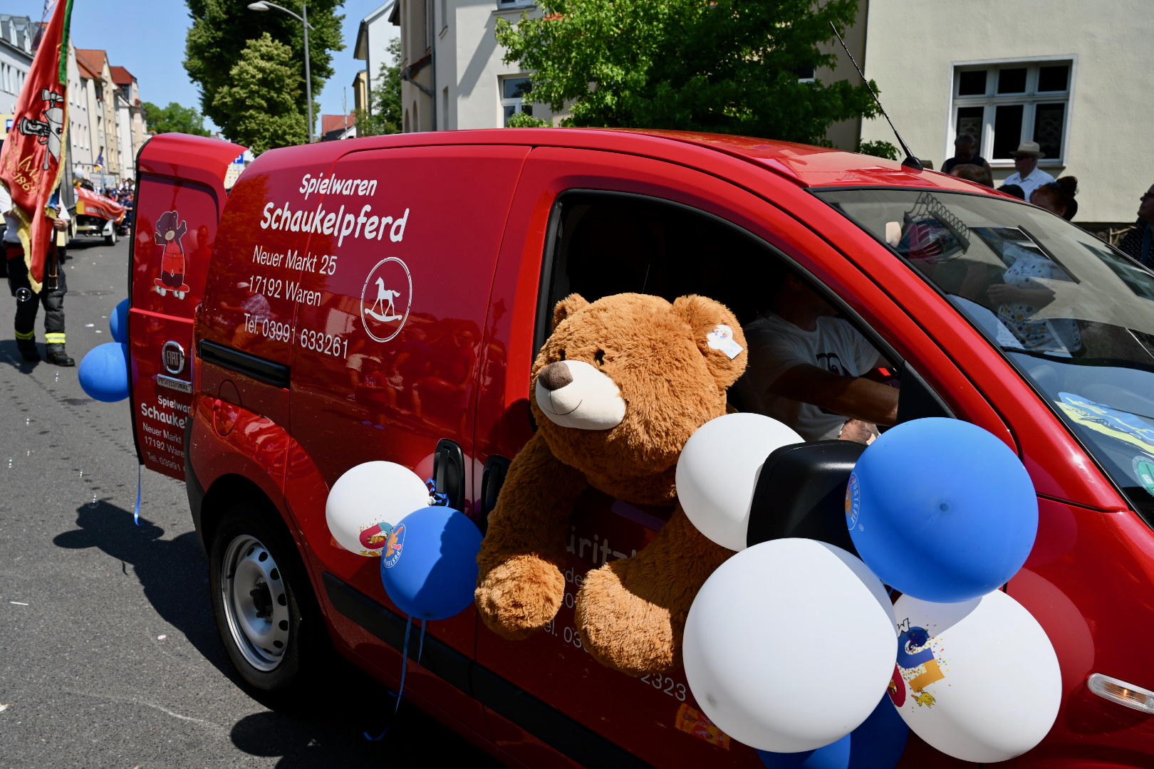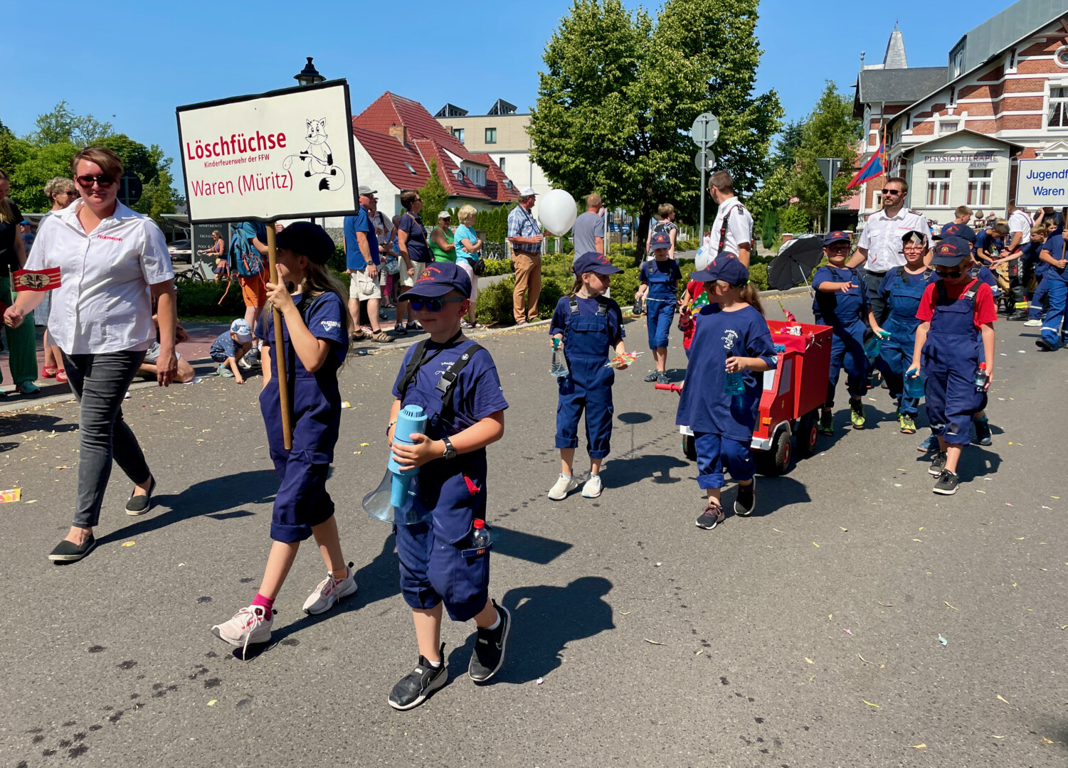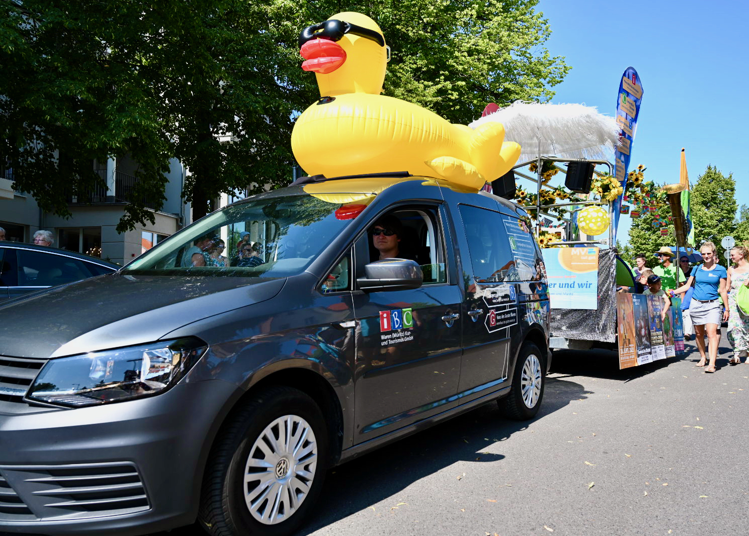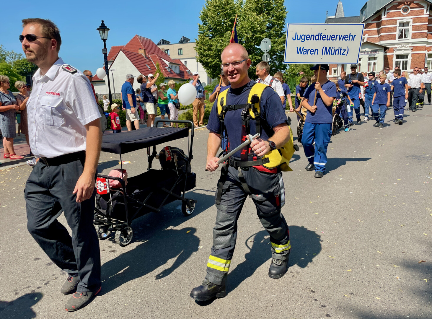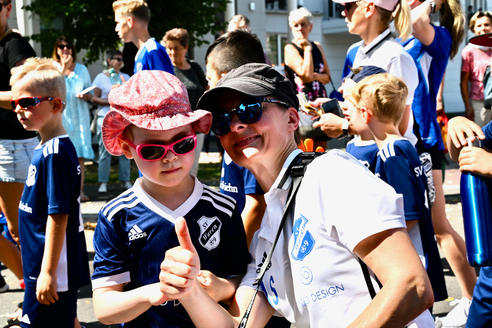 Fast 40 Unternehmen, Vereine und Verbände zogen heute bei brütender Hitze durch Waren und begeisterten die vielen Zuschauer am Straßenrand. Die Schattenplätze links und rechts der Fahrbahn waren heiß begehrt. Und auch wenn der eine oder andere Zuschauer versuchte, Vergleiche mit anderen Städten zu ziehen – wir machen’s nicht und sagen eindeutig: Es war ein toller Umzug.
