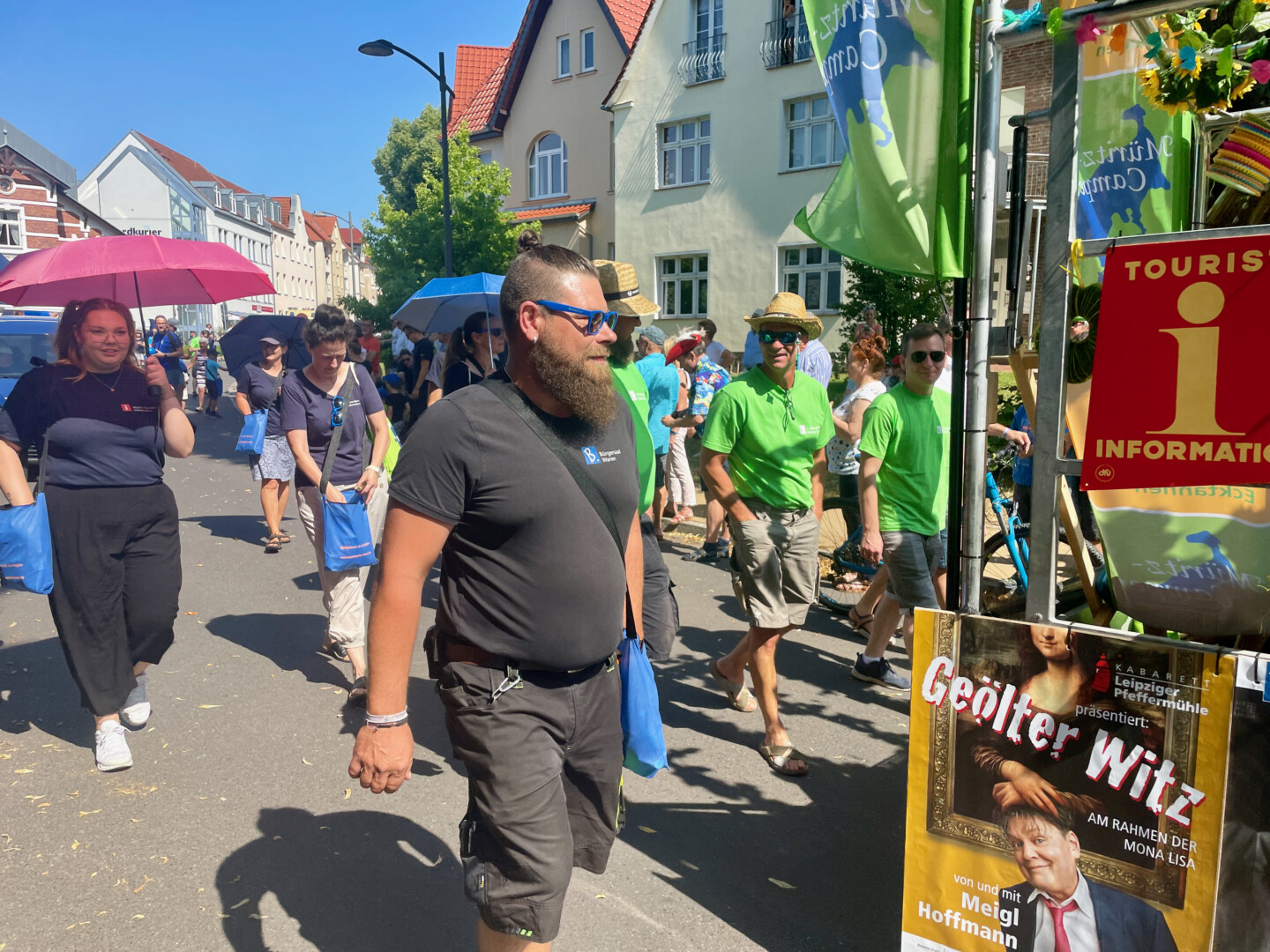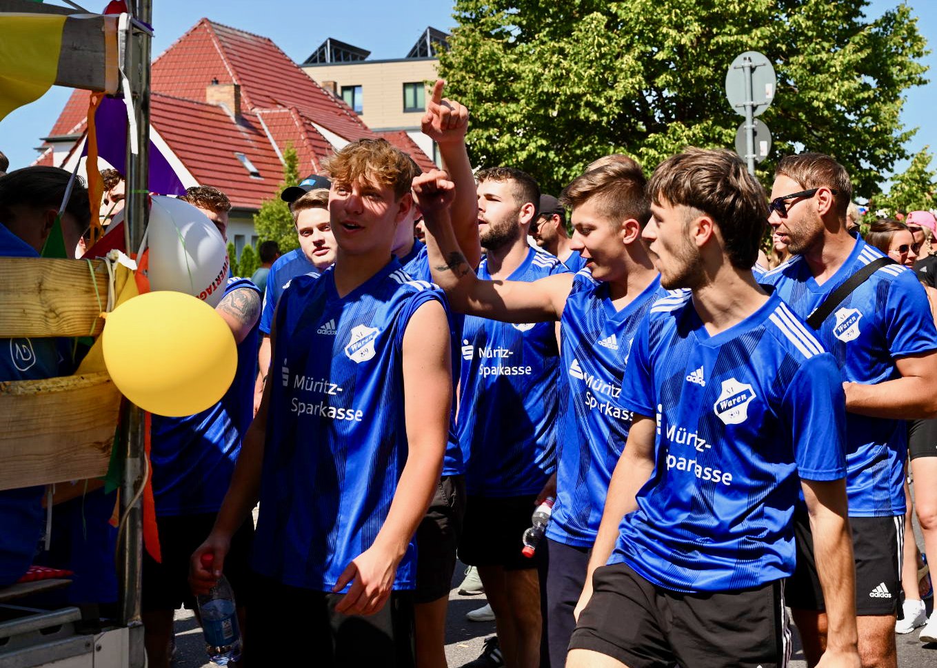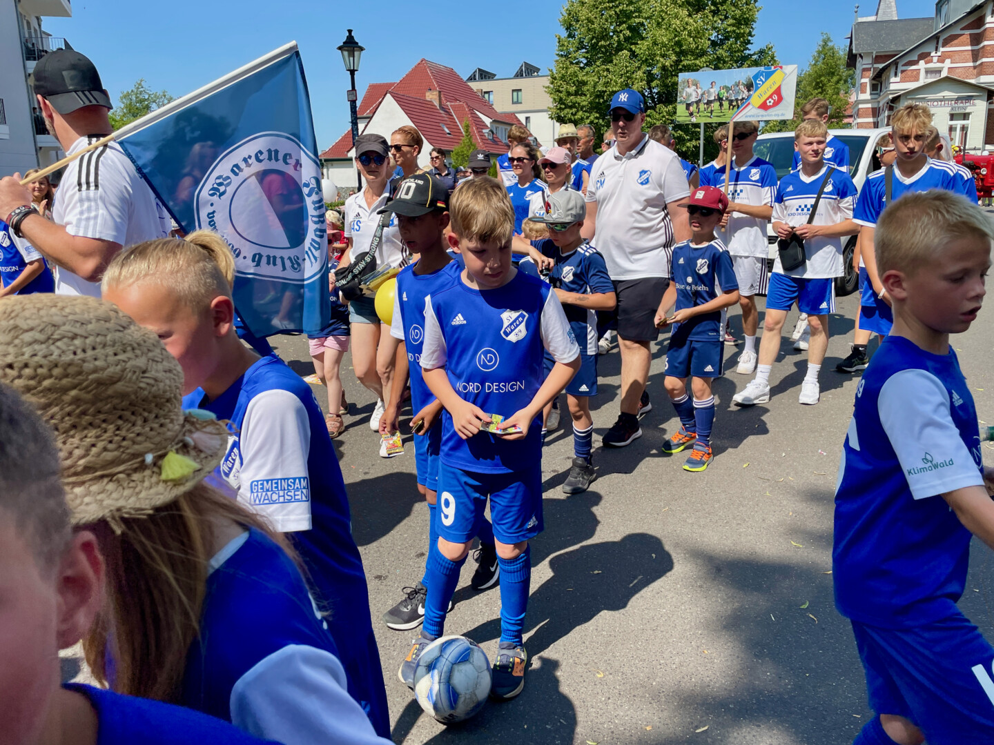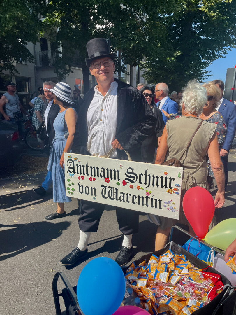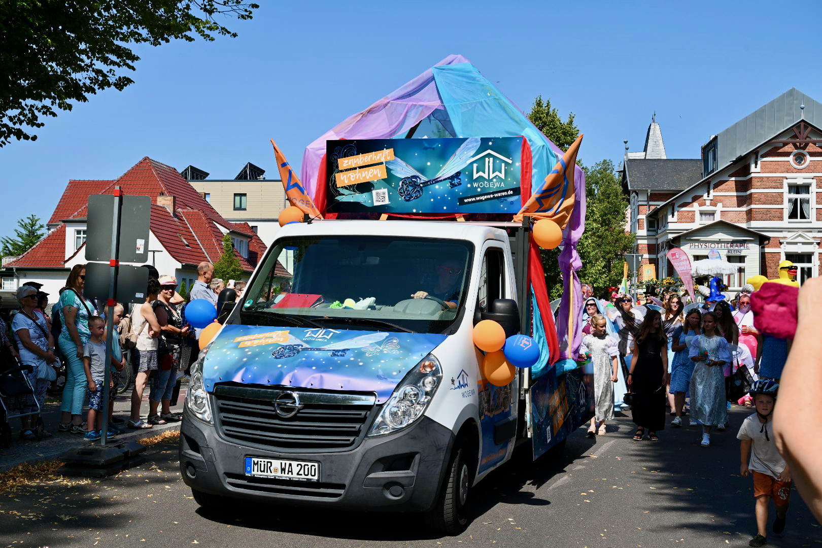 Fast 40 Unternehmen, Vereine und Verbände zogen heute bei brütender Hitze durch Waren und begeisterten die vielen Zuschauer am Straßenrand. Die Schattenplätze links und rechts der Fahrbahn waren heiß begehrt. Und auch wenn der eine oder andere Zuschauer versuchte, Vergleiche mit anderen Städten zu ziehen – wir machen’s nicht und sagen eindeutig: Es war ein toller Umzug.