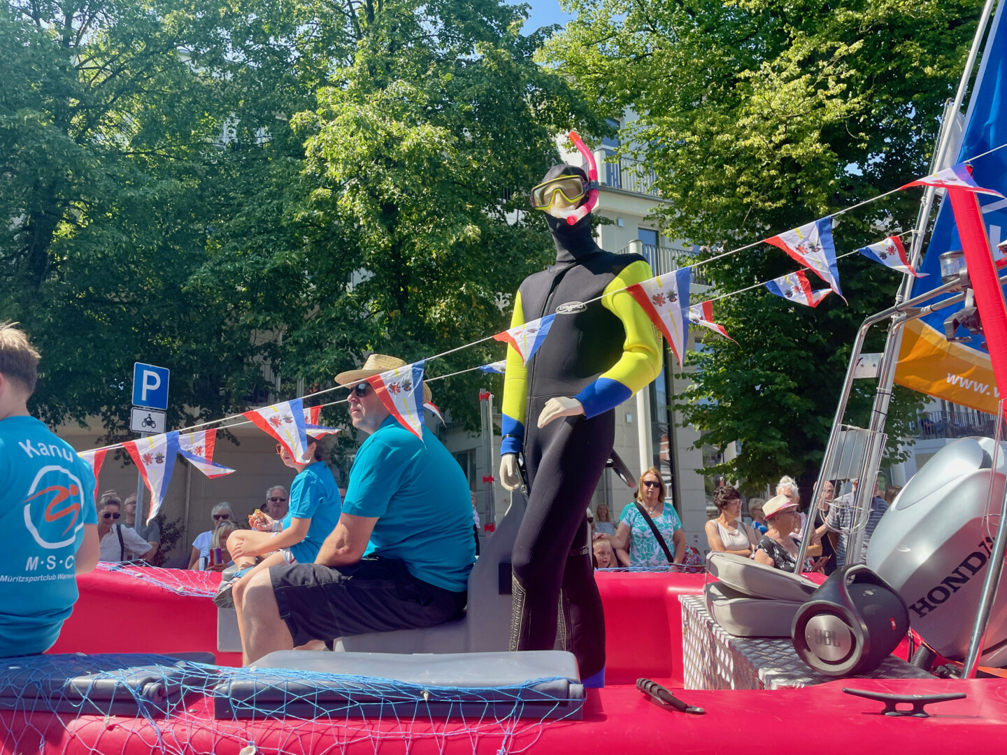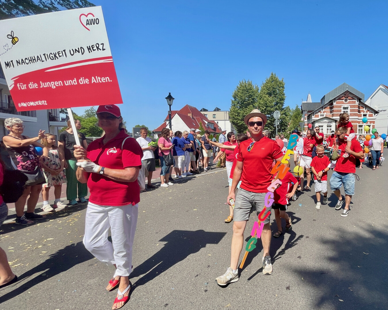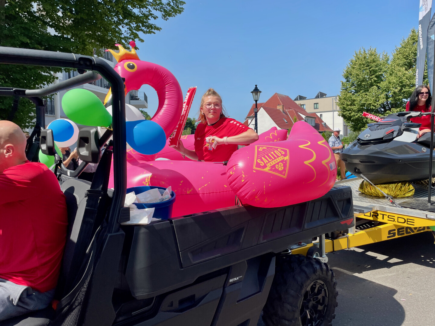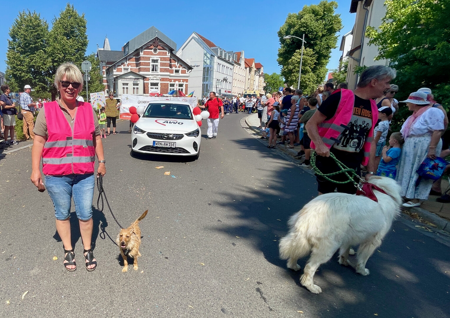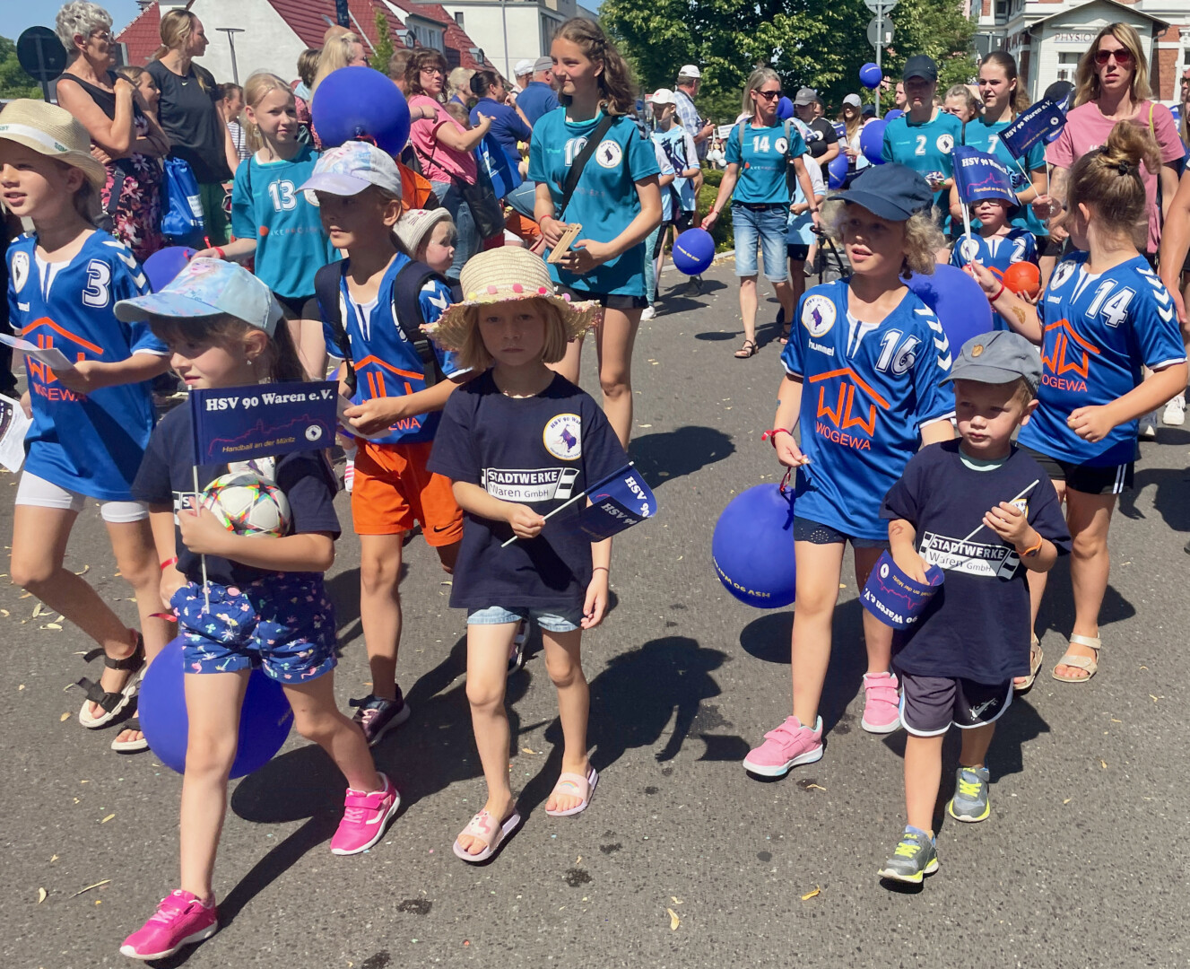 Fast 40 Unternehmen, Vereine und Verbände zogen heute bei brütender Hitze durch Waren und begeisterten die vielen Zuschauer am Straßenrand. Die Schattenplätze links und rechts der Fahrbahn waren heiß begehrt. Und auch wenn der eine oder andere Zuschauer versuchte, Vergleiche mit anderen Städten zu ziehen – wir machen’s nicht und sagen eindeutig: Es war ein toller Umzug.